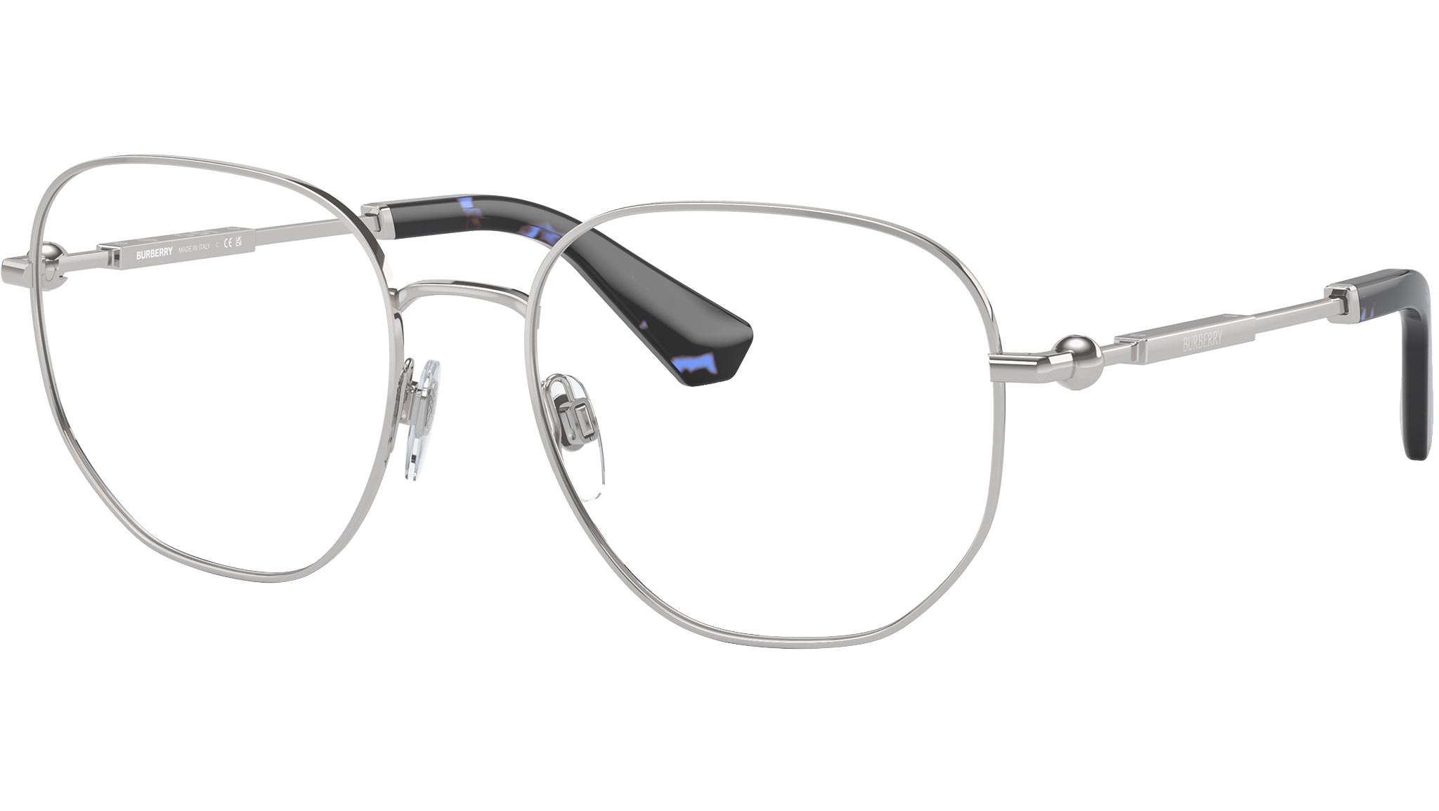 Occhiali da vista Burberry linea Logo modello BE1385 codice colore 1005 con montatura full rim in metallo argento e lenti demo. Scopri l'essenza del più tradizionale stile britannico con gli occhiali da vista firmati Burberry, un'accattivante collezione eyewear di montature originali, da uomo e da donna. Burberry offre una selezione accurata di silhouette classiche e montature contemporanee, adatte a soddisfare le più diverse preferenze. Dagli eleganti modelli full-rim a quelli semi-rimless, la varietà di montature in acetato o in metallo esprime tutta la raffinatezza del brand. Fin dalla sua fondazione nel 1856, Burberry è il simbolo globale del lusso britannico, rinomato per il suo ricco patrimonio e la passione per la vita all'aria aperta. Oggi, guidata dal direttore creativo Daniel Lee, Burberry continua a ridefinire il panorama della moda, interpretando lo stile britannico moderno, con i suoi codici distintivi e i suoi modelli iconici.