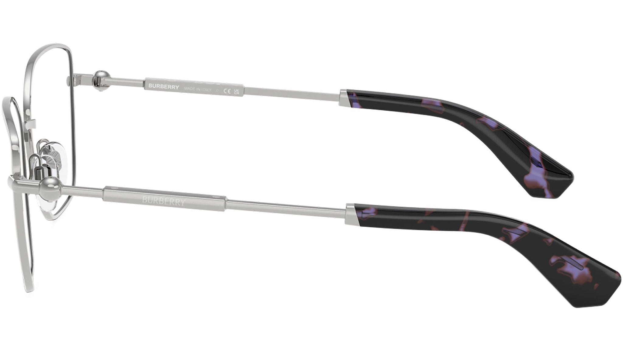 Occhiali da vista Burberry linea Metal Logo modello BE1390 codice colore 1005 con montatura full rim in acciaio argento e lenti demo. Scopri l'essenza del più tradizionale stile britannico con gli occhiali da vista firmati Burberry, un'accattivante collezione eyewear di montature originali, da uomo e da donna. Dagli eleganti modelli full-rim a quelli semi-rimless, la varietà di montature in acetato o in metallo esprime tutta la raffinatezza del brand. Fin dalla sua fondazione nel 1856, Burberry è il simbolo globale del lusso britannico, rinomato per il suo ricco patrimonio e la passione per la vita all'aria aperta. Oggi, guidata dal direttore creativo Daniel Lee, Burberry continua a ridefinire il panorama della moda, interpretando lo stile britannico moderno, con i suoi codici distintivi e i suoi modelli iconici.