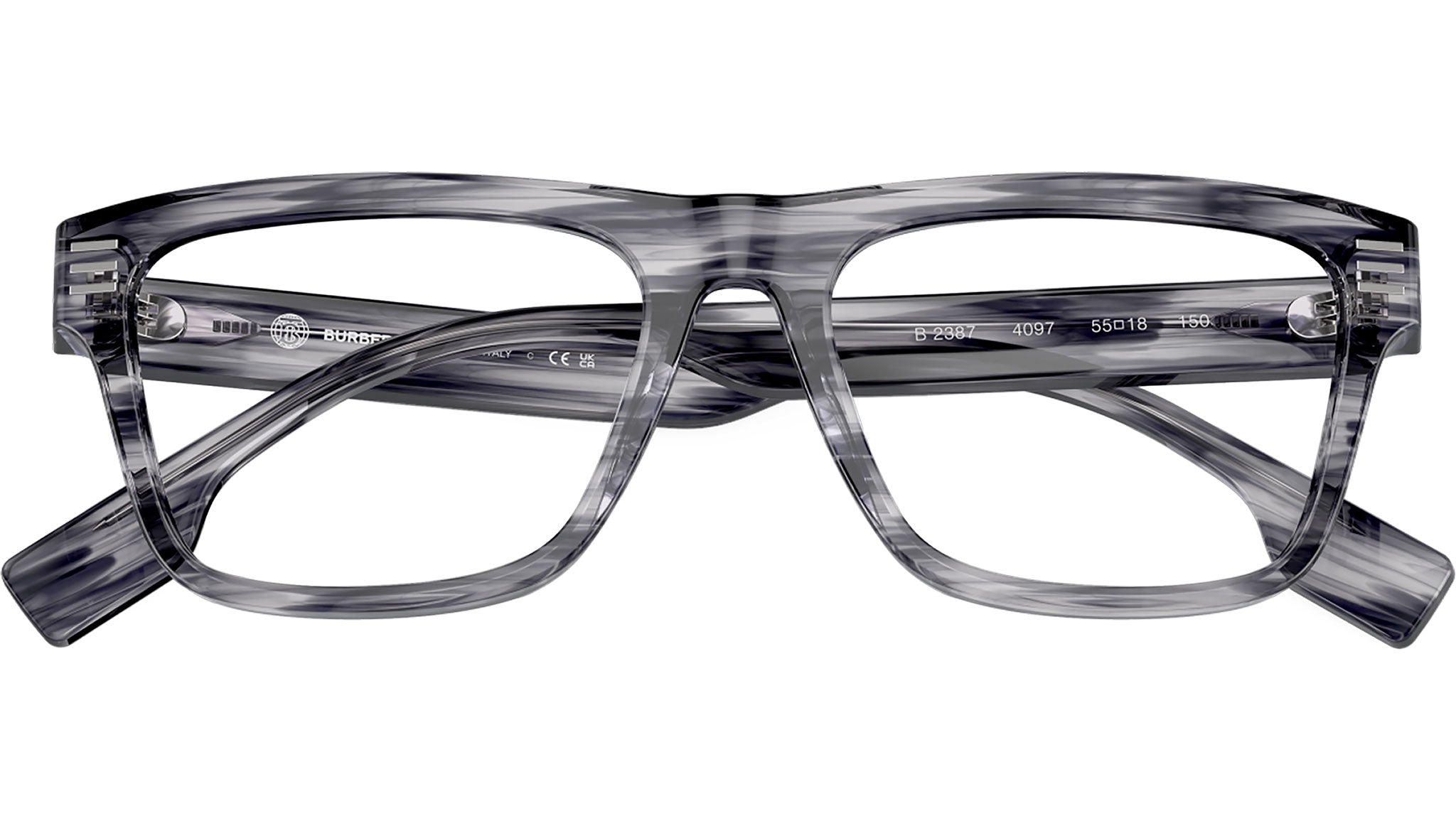 Occhiali da vista Burberry linea B. Stripe modello BE2387 codice colore 4097 con montatura full rim in acetato grigio e lenti demo. Scopri l'essenza del più tradizionale stile britannico con gli occhiali da vista firmati Burberry, un'accattivante collezione eyewear di montature originali, da uomo e da donna. Burberry offre una selezione accurata di silhouette classiche e montature contemporanee, adatte a soddisfare le più diverse preferenze. Dagli eleganti modelli full-rim a quelli semi-rimless, la varietà di montature in acetato o in metallo esprime tutta la raffinatezza del brand. Fin dalla sua fondazione nel 1856, Burberry è il simbolo globale del lusso britannico, rinomato per il suo ricco patrimonio e la passione per la vita all'aria aperta. Oggi, guidata dal direttore creativo Daniel Lee, Burberry continua a ridefinire il panorama della moda, interpretando lo stile britannico moderno, con i suoi codici distintivi e i suoi modelli iconici.