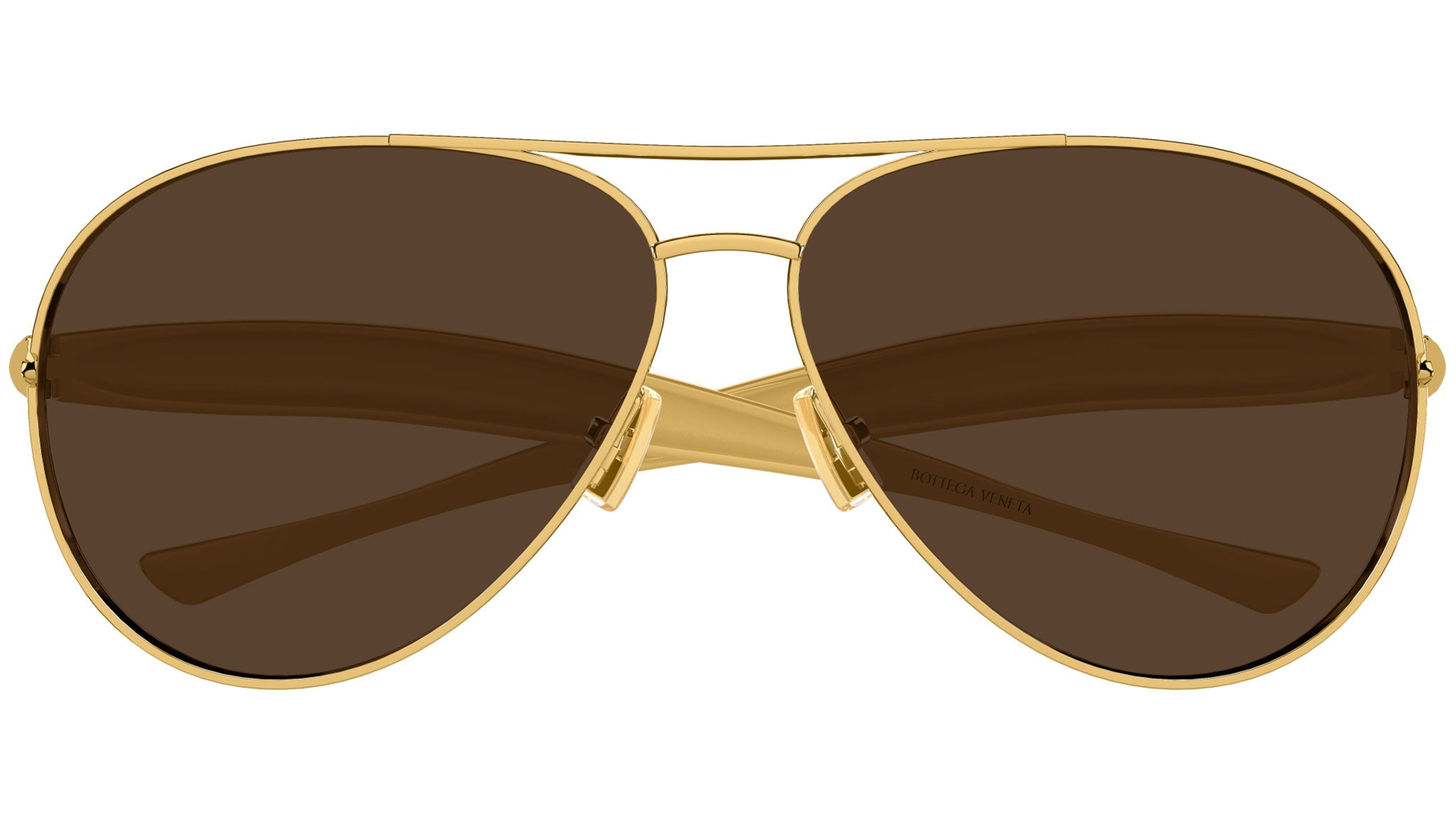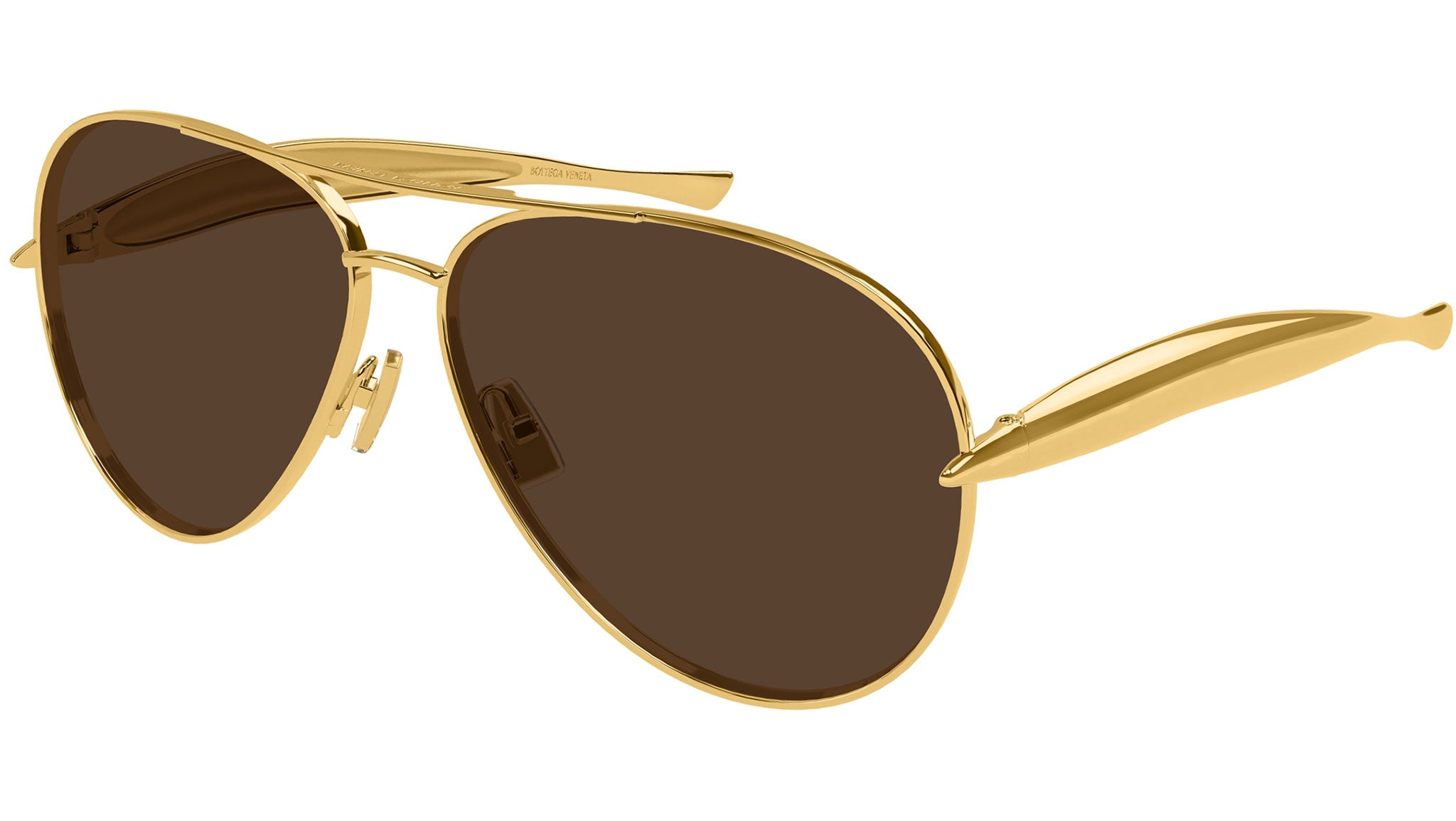 Occhiali da sole Bottega Veneta BV1305S 007 unisex con montatura aviatore in metallo oro lucido e lenti marrone tinta unita. Linea: Unapologetic. Codice modello: BV1305S. Codice colore: 007. Made in Japan. Rivenditore autorizzato Bottega Veneta online. Gli occhiali vengono consegnati con custodia e accessori originali e sono coperti dalla garanzia ufficiale di 12 mesi del produttore.