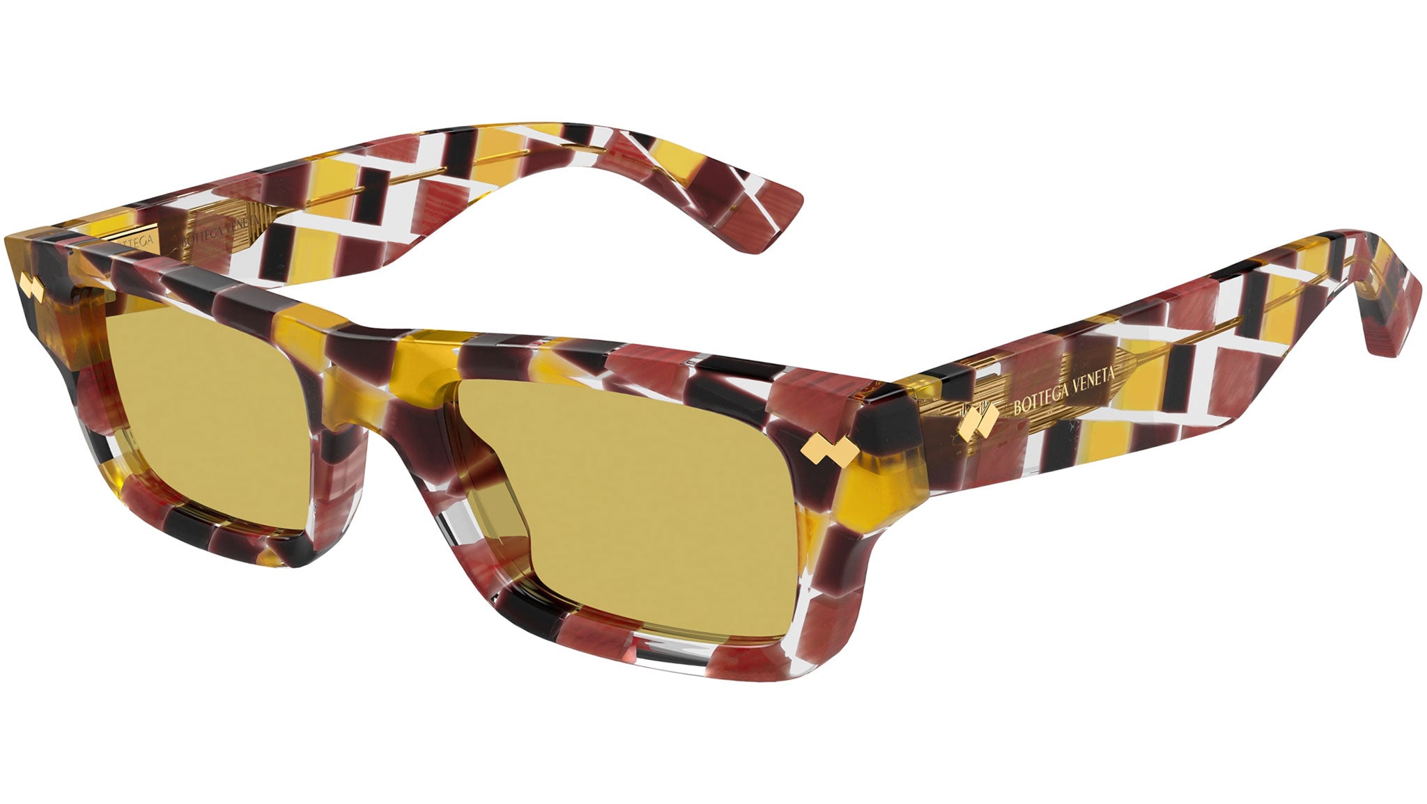 Occhiali da sole Bottega Veneta BV1351S 003 unisex con montatura rettangolare in acetato riciclato damier bordeaux e ocra lucido e lenti beige nicotina tinta unita. Linea: Ribbon. Codice modello: BV1351S. Codice colore: 003. Made in Japan. Rivenditore autorizzato Bottega Veneta online. Gli occhiali vengono consegnati con custodia e accessori originali e sono coperti dalla garanzia ufficiale di 12 mesi del produttore.