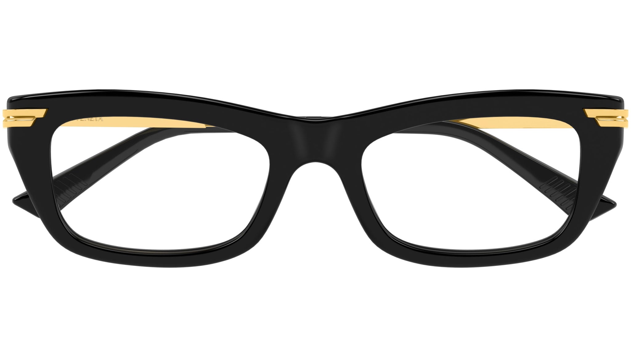 Occhiali da vista Bottega Veneta BV1371O 001 donna con montatura rettangolare in acetato riciclato nero lucido tinta unita e lenti demo. Linea: Ribbon. Codice modello: BV1371O. Codice colore: 001. Made in Italy. Rivenditore autorizzato Bottega Veneta online. Gli occhiali vengono consegnati con custodia e accessori originali e sono coperti dalla garanzia ufficiale di 12 mesi del produttore.