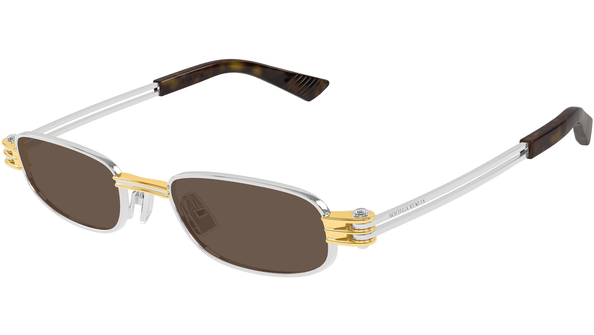 Occhiali da sole Bottega Veneta BV1381S 001 unisex con montatura rettangolare in metallo argento lucido e lenti marrone tinta unita. Linea: Eyewear. Codice modello: BV1381S. Codice colore: 001. Made in Japan. Rivenditore autorizzato Bottega Veneta online. Gli occhiali vengono consegnati con custodia e accessori originali e sono coperti dalla garanzia ufficiale di 12 mesi del produttore.