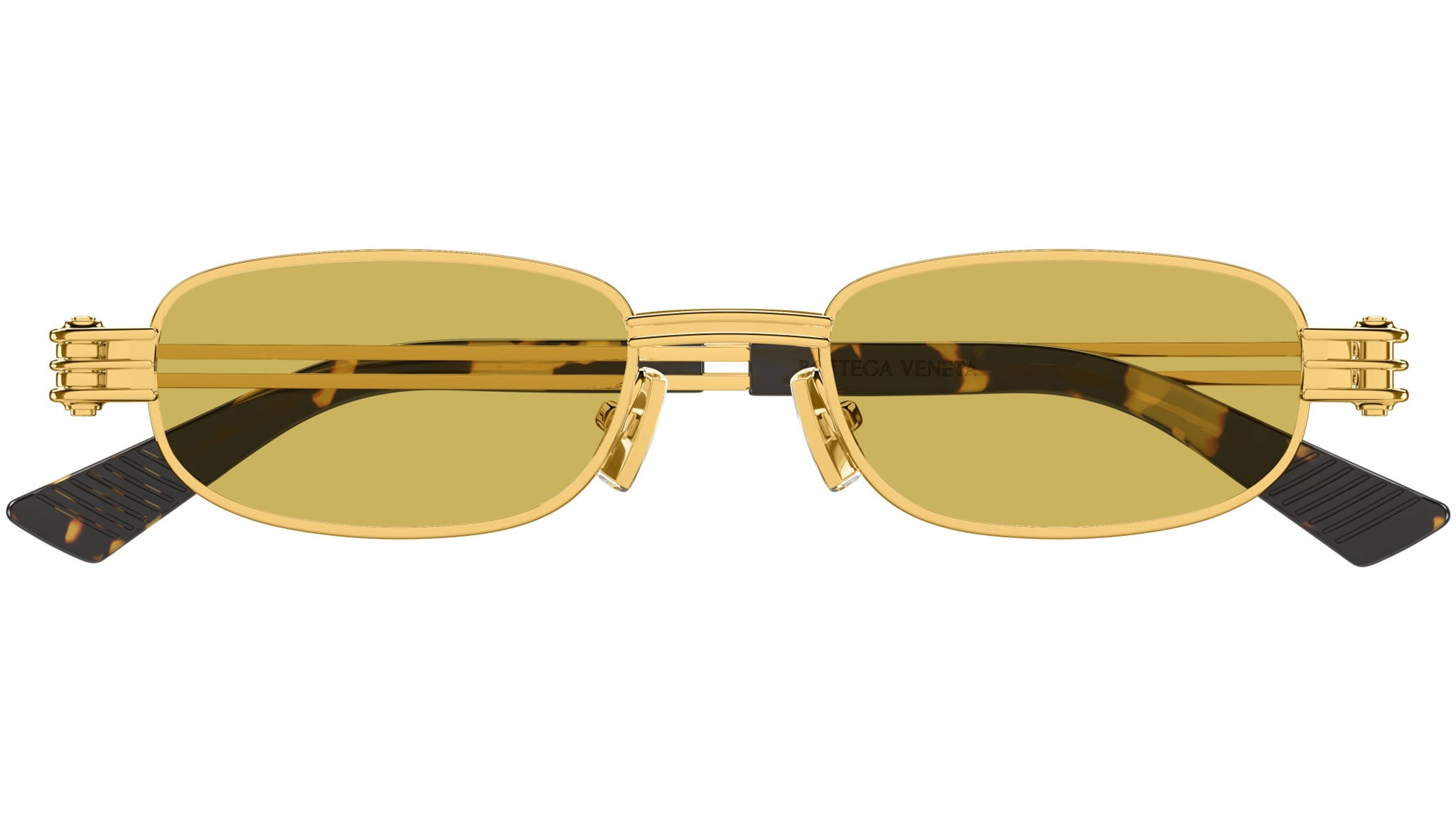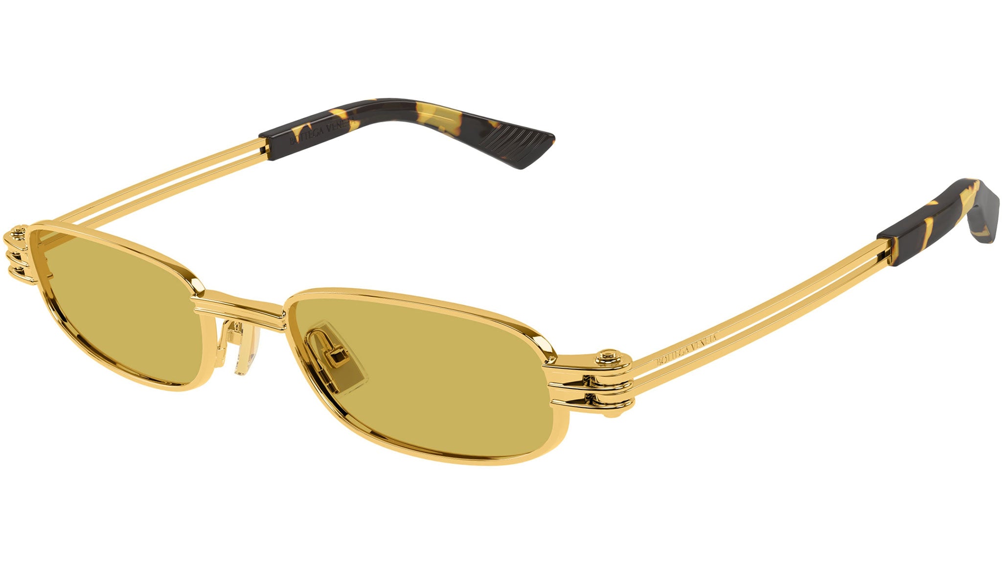 Occhiali da sole Bottega Veneta BV1381S 002 unisex con montatura rettangolare in metallo oro lucido e lenti beige nicotina tinta unita. Linea: Eyewear. Codice modello: BV1381S. Codice colore: 002. Made in Japan. Rivenditore autorizzato Bottega Veneta online. Gli occhiali vengono consegnati con custodia e accessori originali e sono coperti dalla garanzia ufficiale di 12 mesi del produttore.