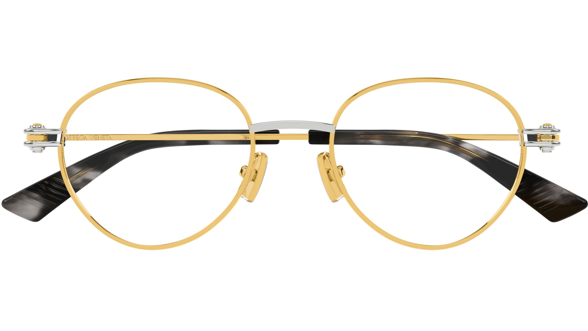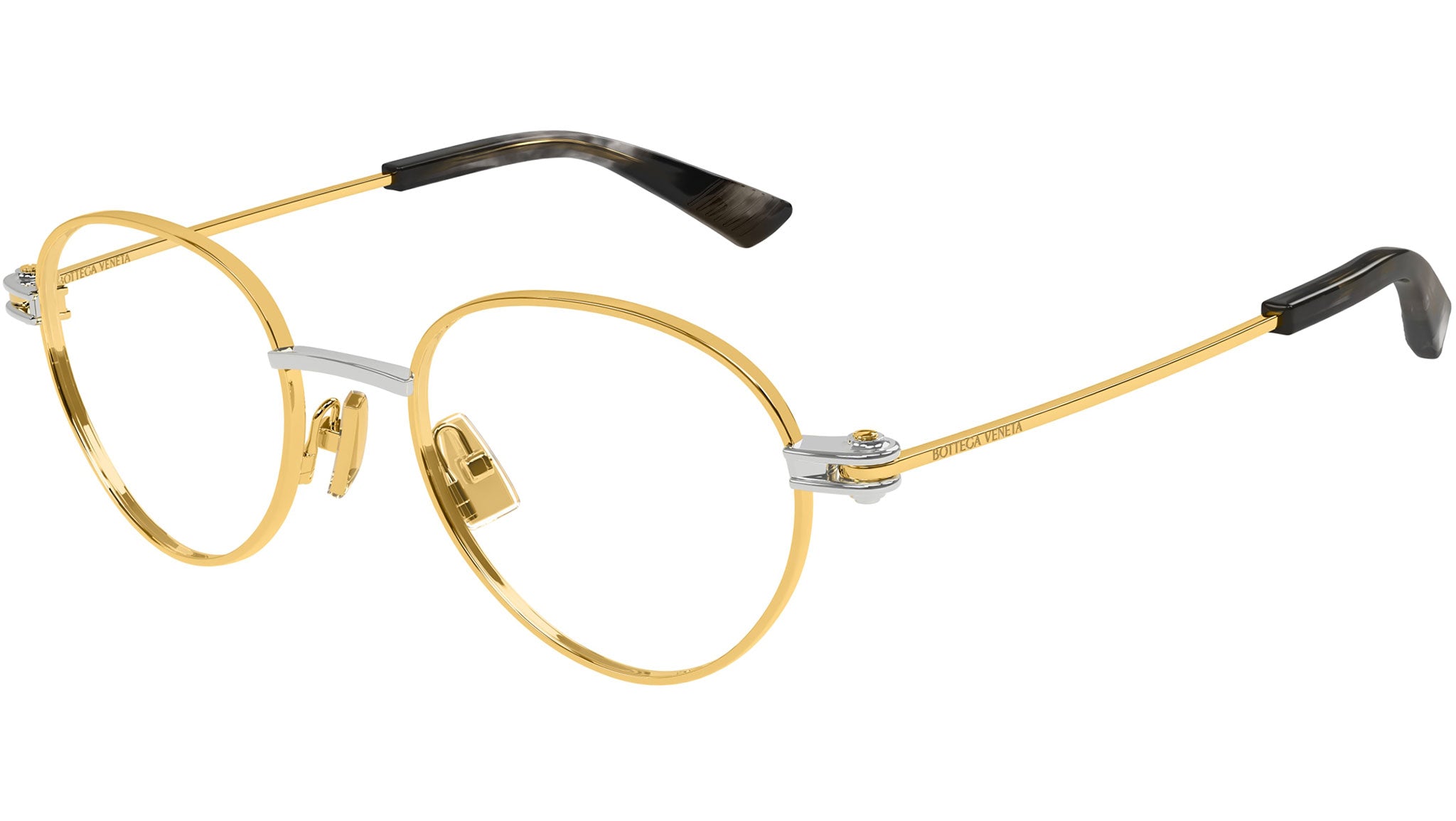 Occhiali da vista Bottega Veneta BV1382O 002 unisex con montatura pantos in metallo oro lucido, argento lucido e lenti demo. Linea: Eyewear. Codice modello: BV1382O. Codice colore: 002. Made in Japan. Rivenditore autorizzato Bottega Veneta online. Gli occhiali vengono consegnati con custodia e accessori originali e sono coperti dalla garanzia ufficiale di 12 mesi del produttore.