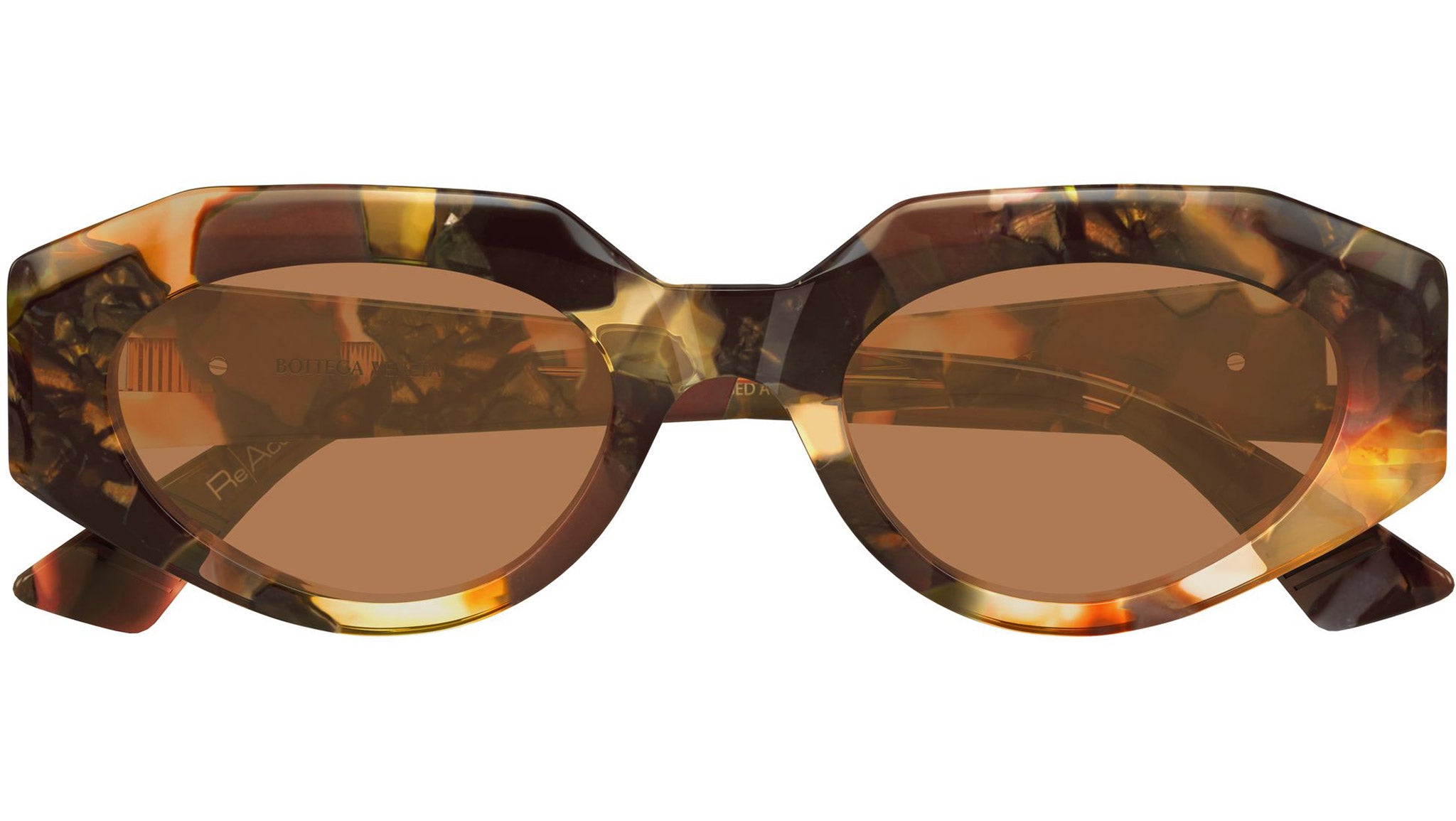 Occhiali da sole Bottega Veneta BV1392S 002 donna con montatura pantos in acetato riciclato marrone perlato e giallo intrecciato e lenti marrone tinta unita. Linea: Ribbon. Codice modello: BV1392S. Codice colore: 002. Made in Italy. Rivenditore autorizzato Bottega Veneta online. Gli occhiali vengono consegnati con custodia e accessori originali e sono coperti dalla garanzia ufficiale di 12 mesi del produttore.