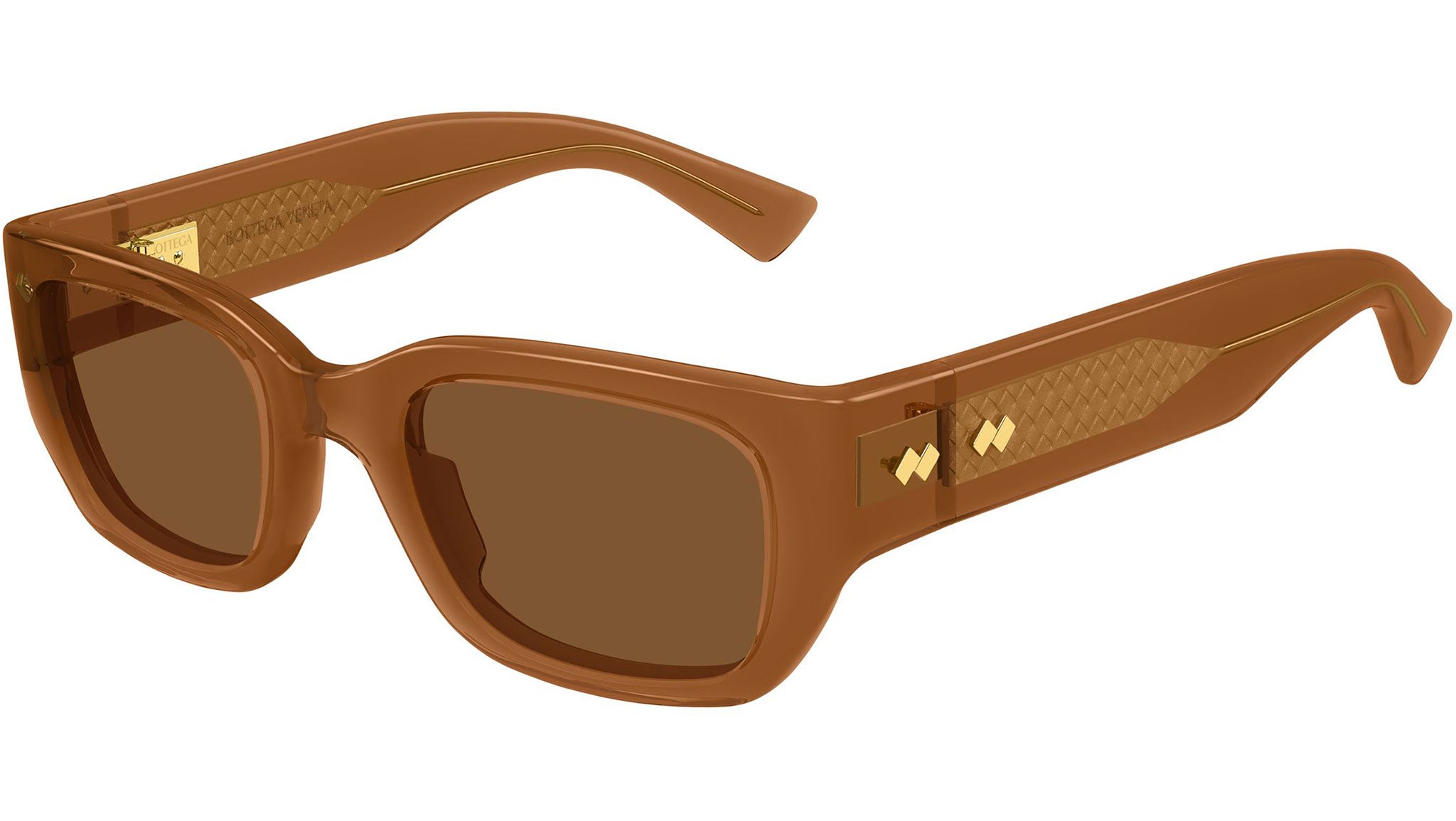 Occhiali da sole Bottega Veneta BV1400S 003 unisex con montatura rettangolare in acetato riciclato marrone pan di zenzero trasparente lucido e lenti marrone tinta unita. Linea: Intrecciato. Codice modello: BV1400S. Codice colore: 003. Made in Japan. Rivenditore autorizzato Bottega Veneta online. Gli occhiali vengono consegnati con custodia e accessori originali e sono coperti dalla garanzia ufficiale di 12 mesi del produttore.