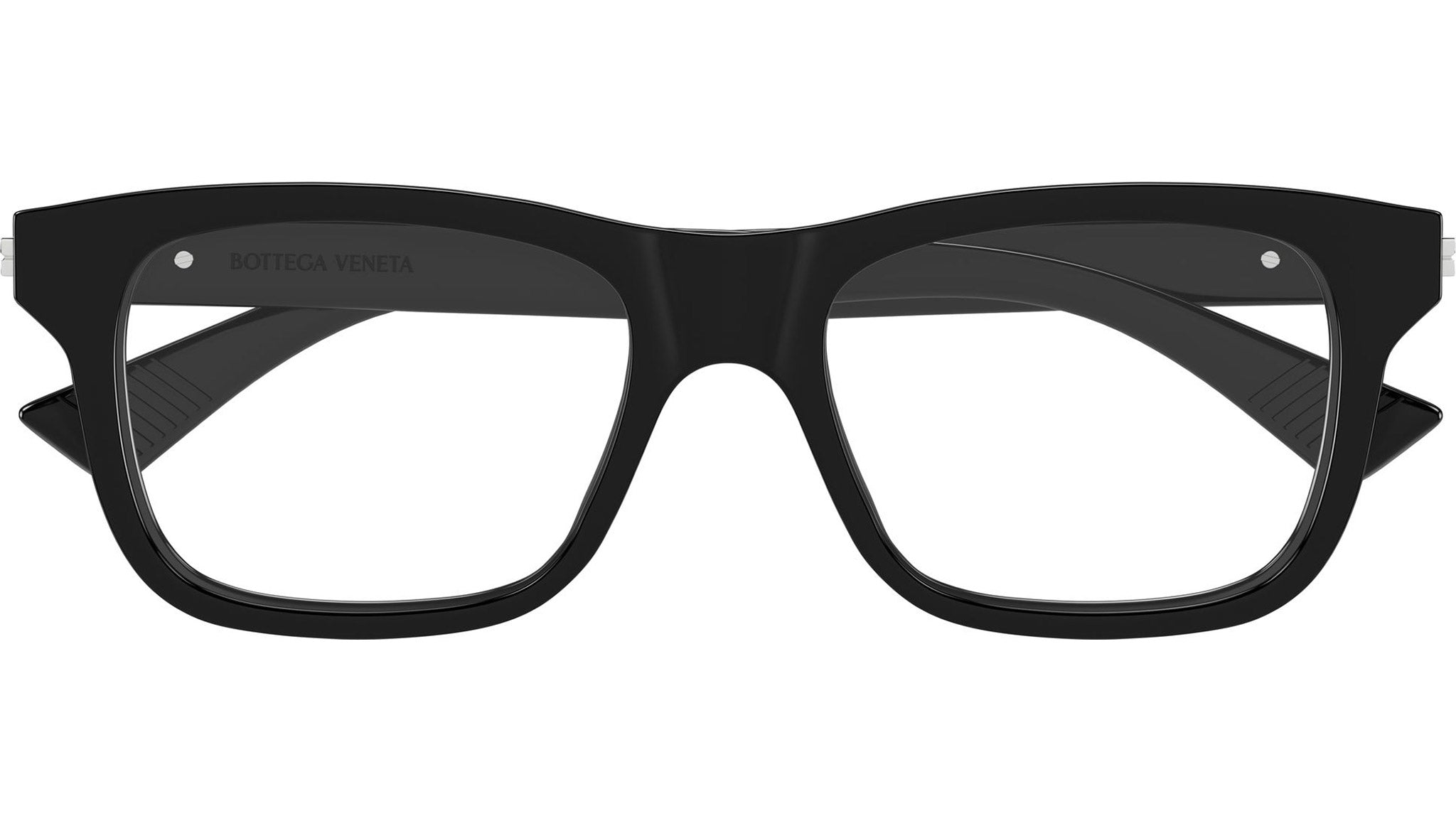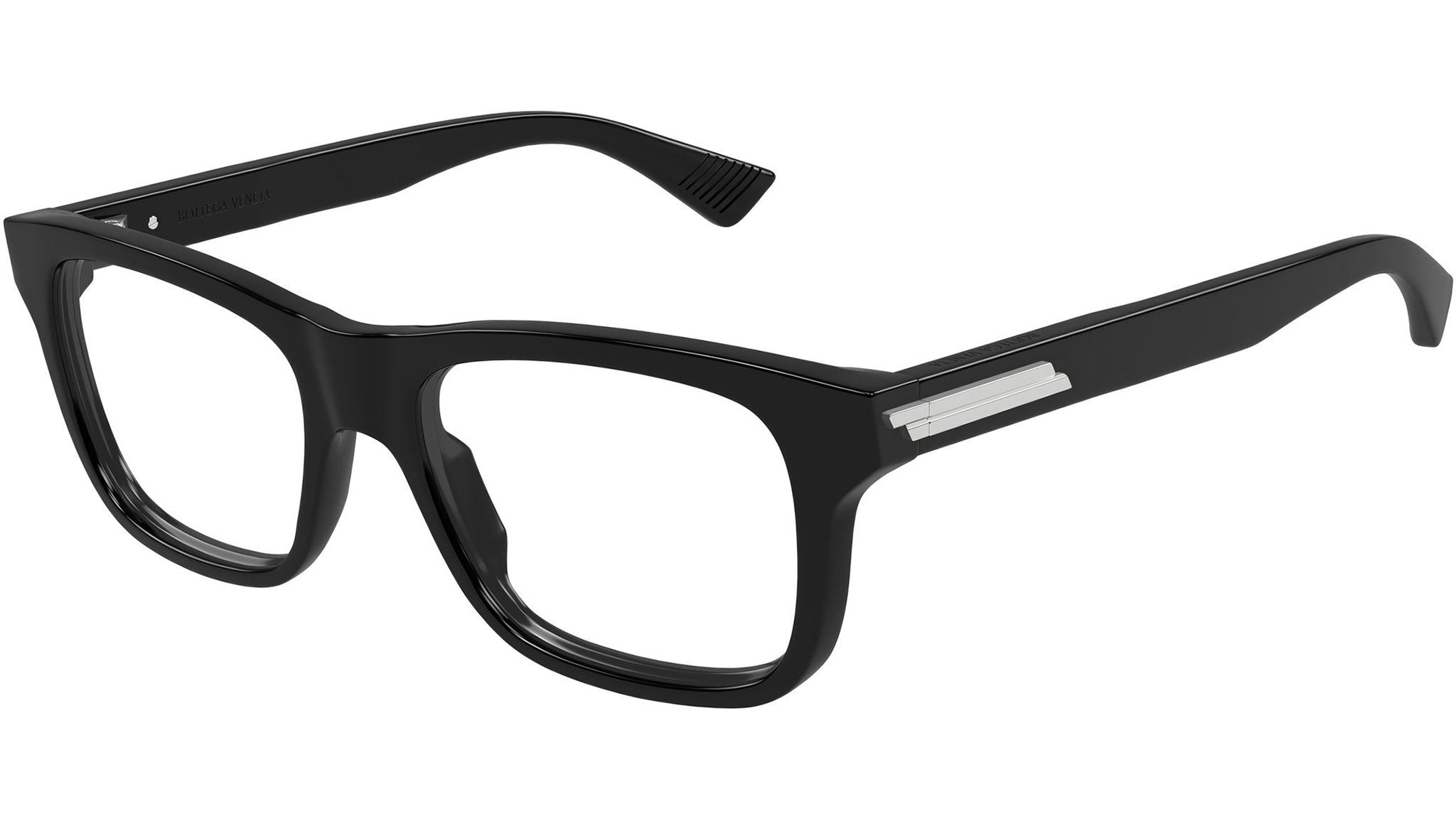 Occhiali da vista Bottega Veneta BV1412O uomo con montatura rettangolare in acetato riciclato nero lucido tinta unita e lenti demo. Linea: Ribbon. Codice modello: BV1412O. Codice colore 54 mm: 005. 52 mm: 009. Made in Japan. Rivenditore autorizzato Bottega Veneta online. Gli occhiali vengono consegnati con custodia e accessori originali e sono coperti dalla garanzia ufficiale di 12 mesi del produttore.
