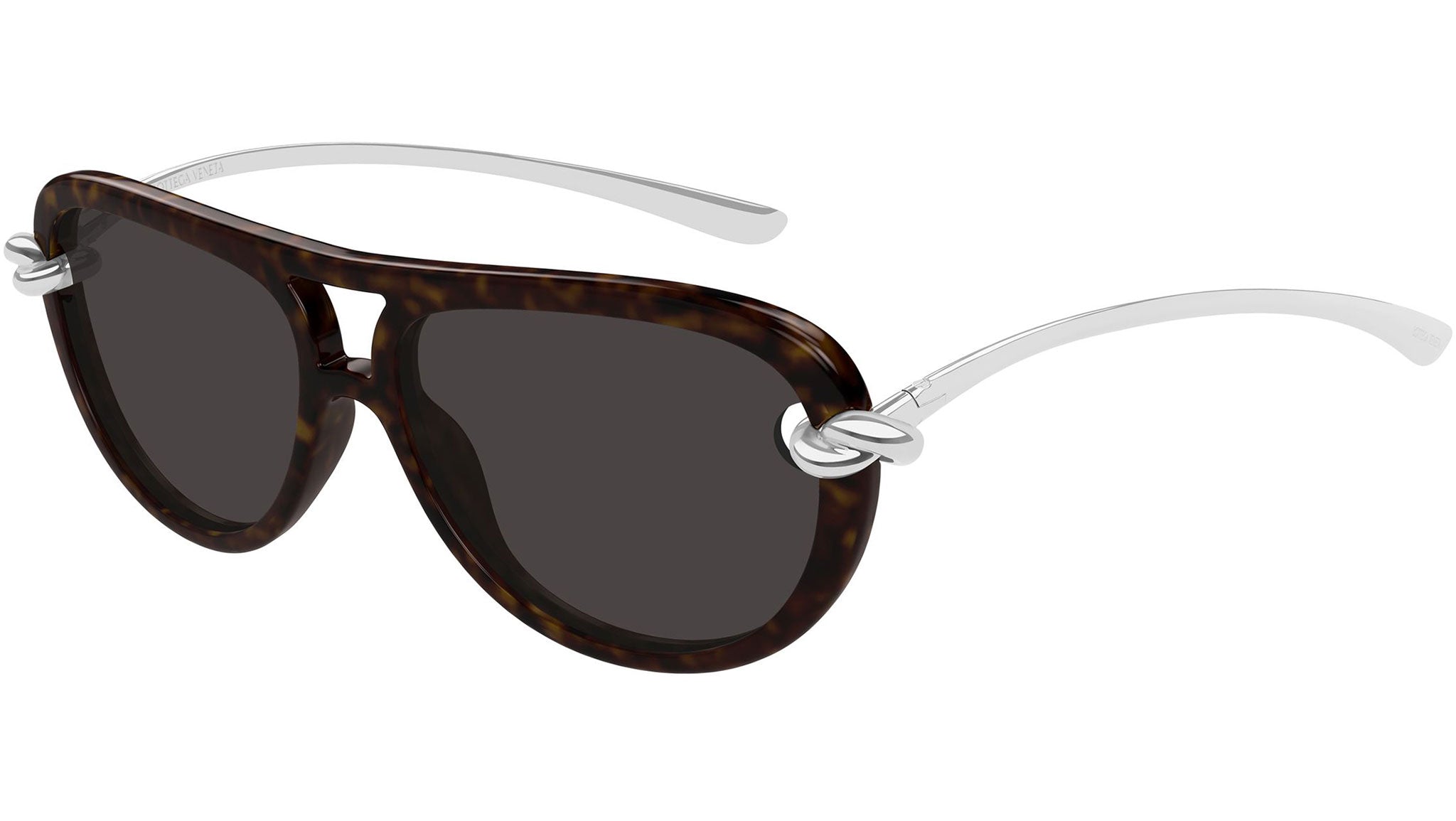 Occhiali da sole Bottega Veneta BV1418S 002 donna con montatura aviatore in inietatto avana scuro lucido e lenti grigio tinta unita. Linea: Signature Icons. Codice modello: BV1418S. Codice colore: 002. Made in Japan. Rivenditore autorizzato Bottega Veneta online. Gli occhiali vengono consegnati con custodia e accessori originali e sono coperti dalla garanzia ufficiale di 12 mesi del produttore.