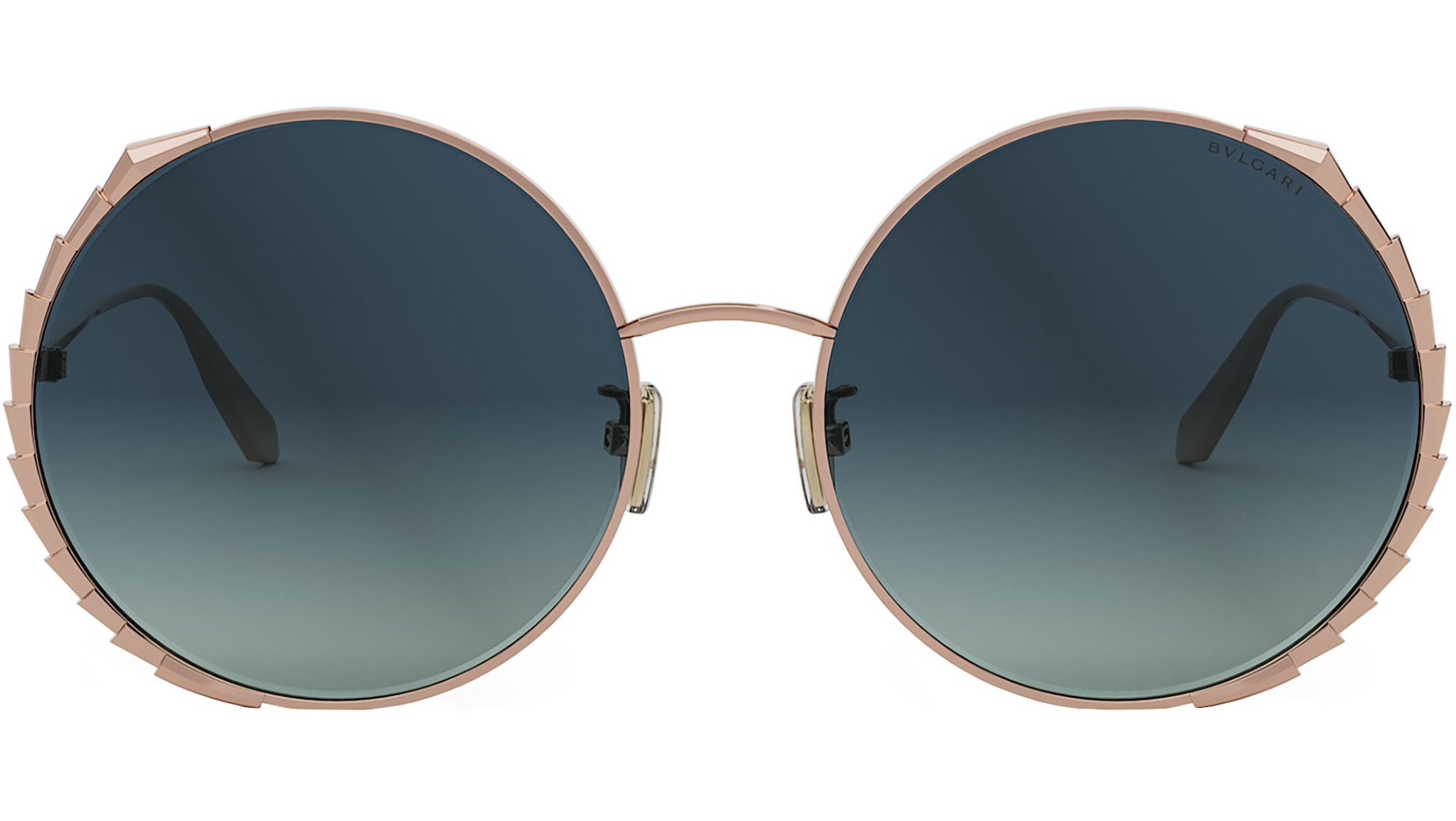 Occhiali da sole BVLGARI BV40005U linea Serpenti in metallo oro rosa colore 28P con lenti color grigio verde sfumato. Rivenditore autorizzato online BULGARI. Gli occhiali vengono consegnati con custodia e accessori originali.