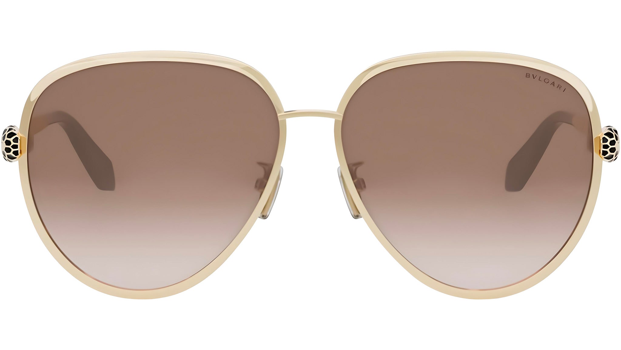 Occhiali da sole BVLGARI BV40043U linea Serpenti Forever in metallo oro colore 33F con lenti color gradiente marrone. Rivenditore autorizzato online BULGARI. Gli occhiali vengono consegnati con custodia e accessori originali.