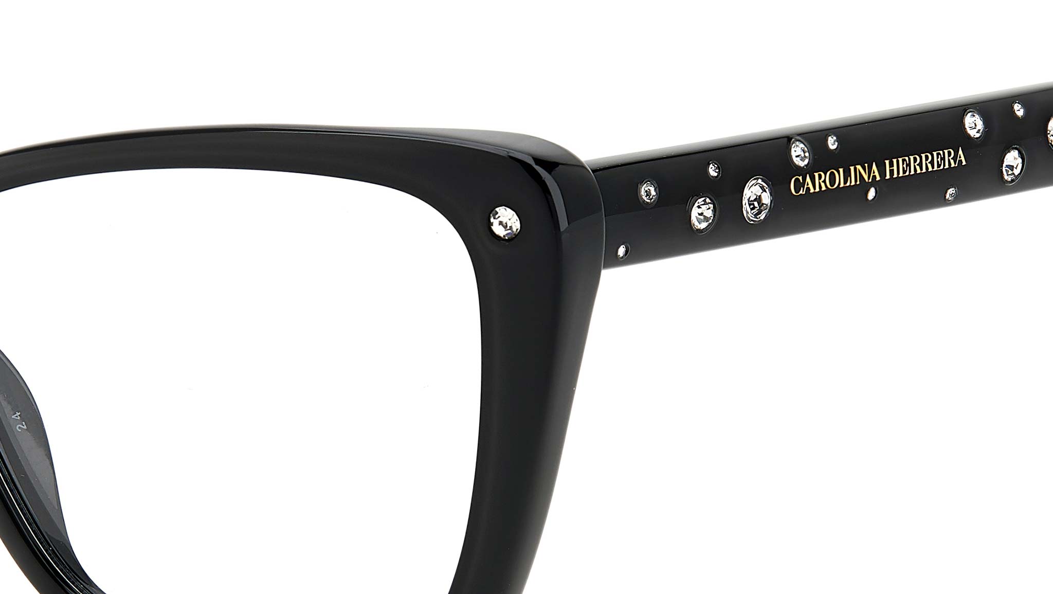 Occhiali da vista Carolina Herrera modello HER 0149 codice colore 807 in acetato nero con lenti demo. Rivenditore autorizzato online Carolina Herrera. Tutti gli occhiali Carolina Herrera vengono consegnati con astuccio originale e sono coperti dalla garanzia del produttore di 12 mesi.