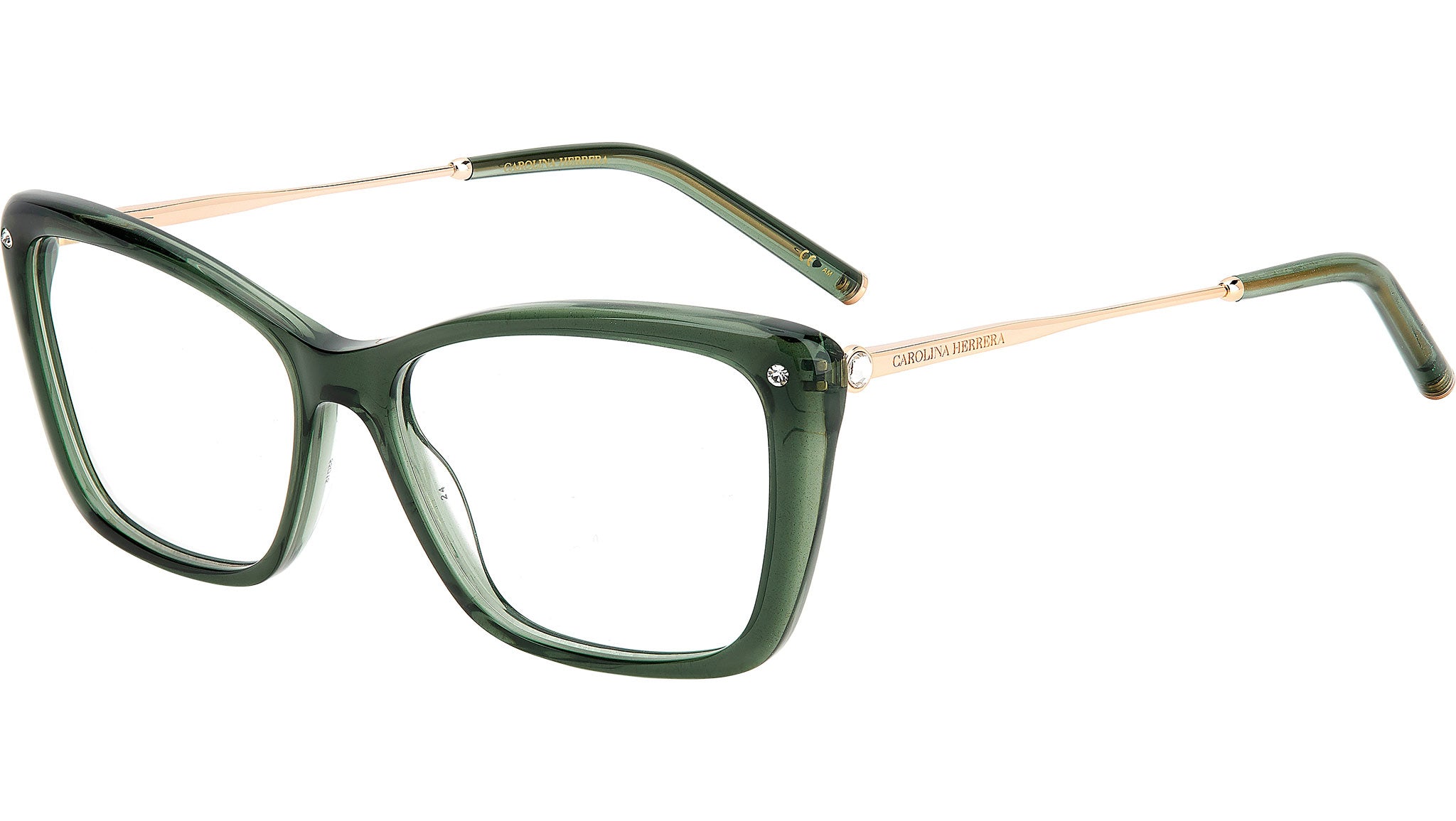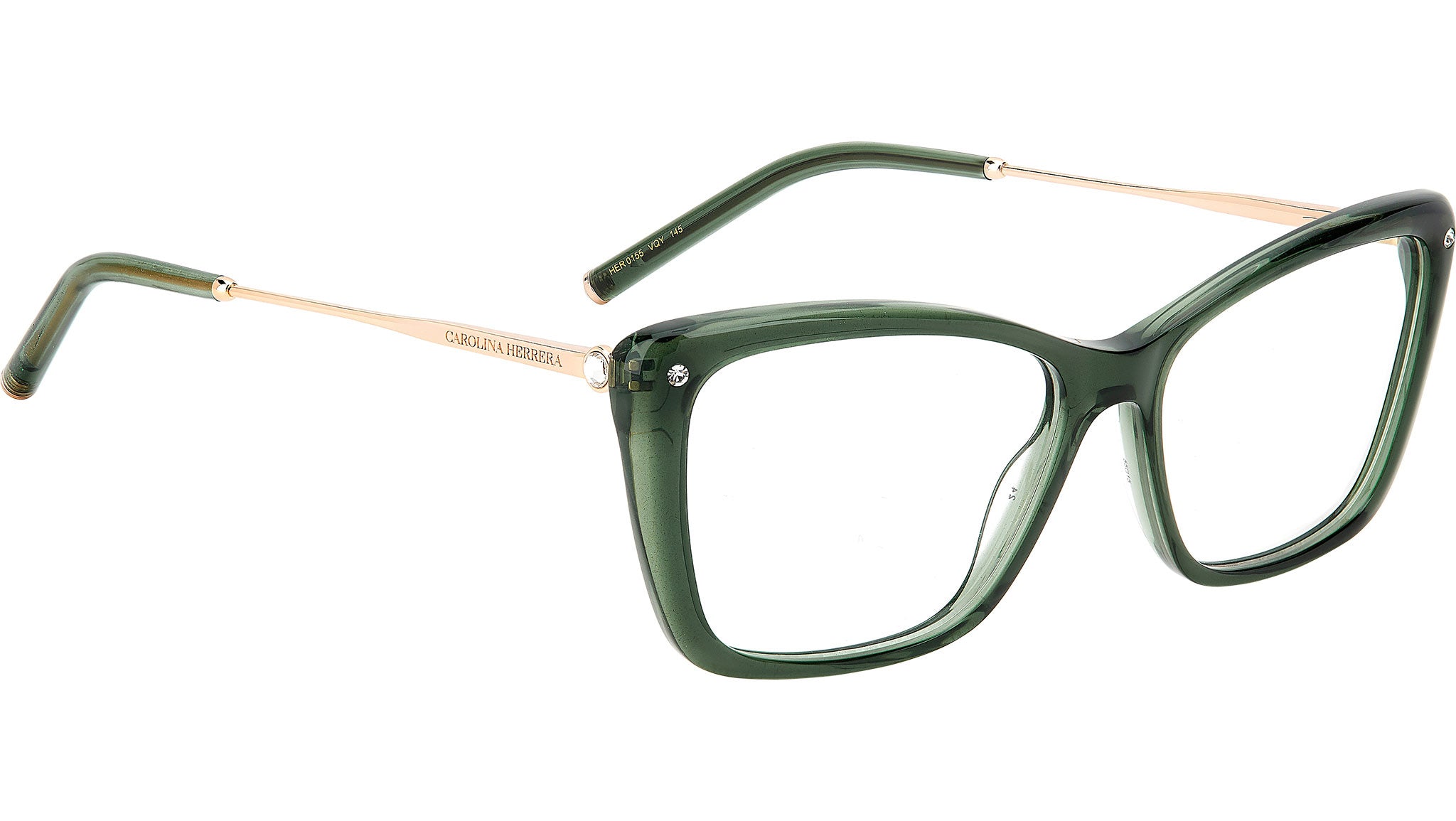 Occhiali da vista Carolina Herrera modello HER 0155 codice colore VQY in acetato verde glitter con lenti demo. Rivenditore autorizzato online Carolina Herrera. Tutti gli occhiali Carolina Herrera vengono consegnati con astuccio originale e sono coperti dalla garanzia del produttore di 12 mesi.