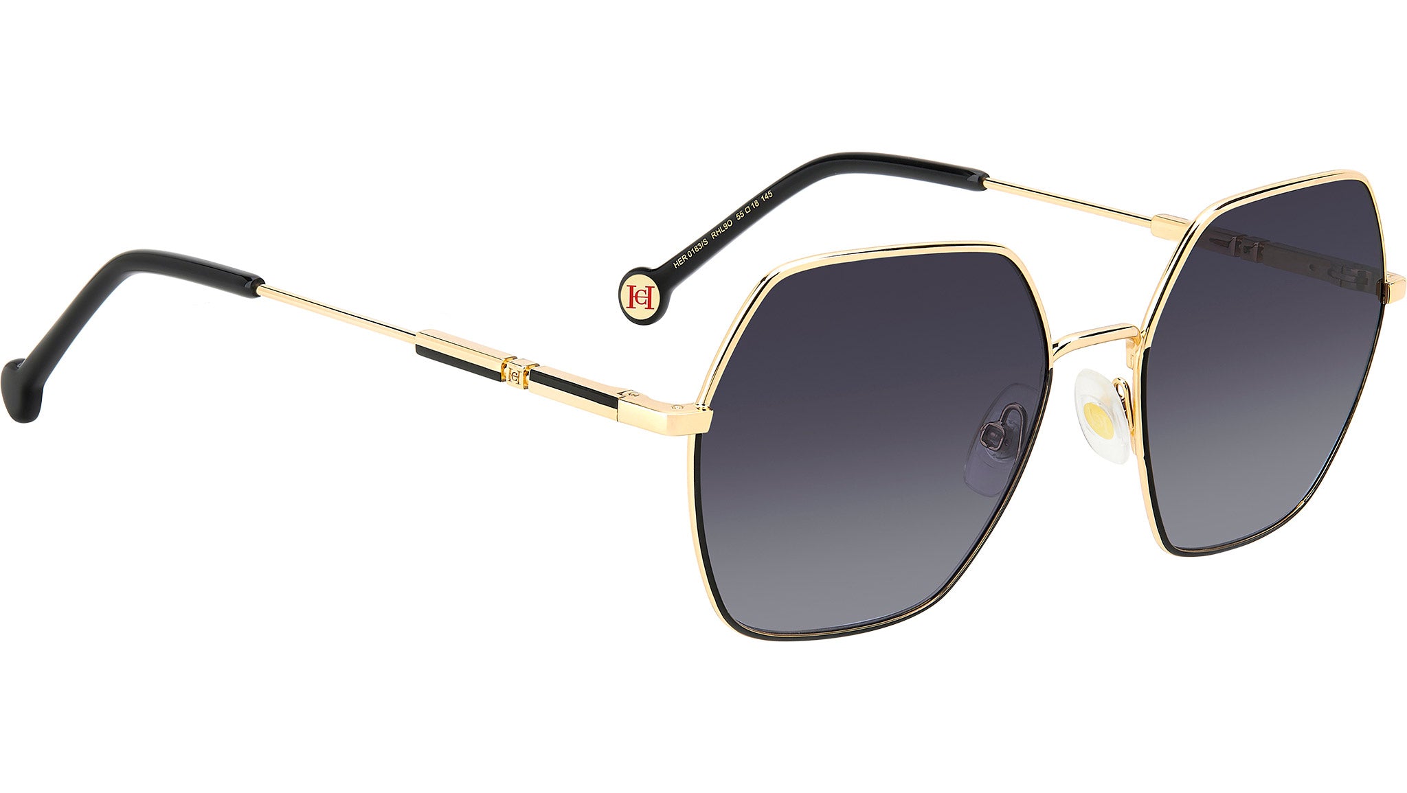 Occhiali da sole Carolina Herrera modello HER 0183/S codice colore RHL in metallo oro nero con lenti in CR-39 grigio scuro sfumato. Rivenditore autorizzato online Carolina Herrera. Tutti gli occhiali Carolina Herrera vengono consegnati con astuccio originale e sono coperti dalla garanzia del produttore di 12 mesi.