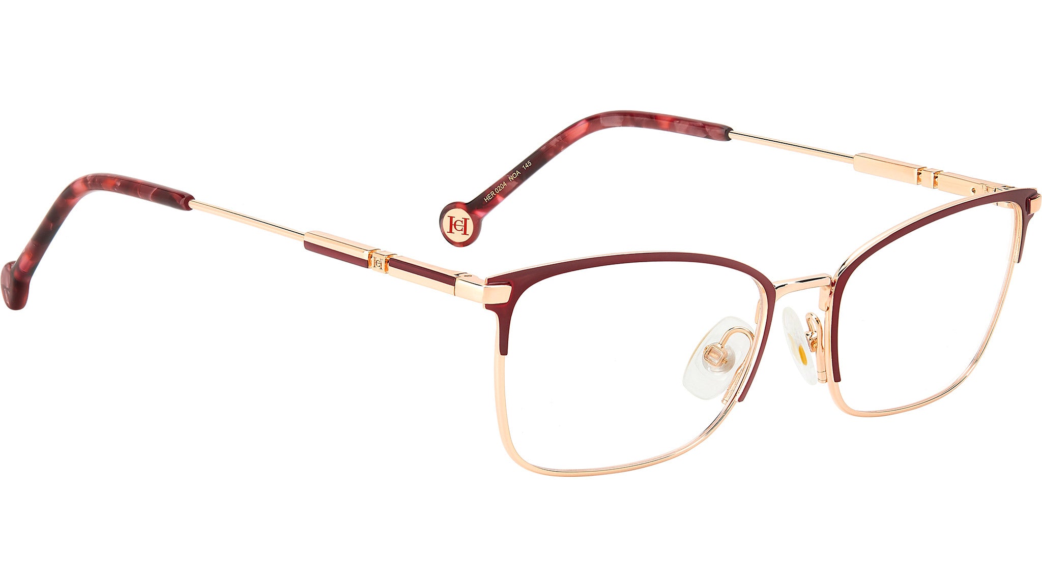 Occhiali da vista Carolina Herrera modello HER 0204 codice colore NOA in metallo oro bordeaux con lenti demo. Rivenditore autorizzato online Carolina Herrera. Tutti gli occhiali Carolina Herrera vengono consegnati con astuccio originale e sono coperti dalla garanzia del produttore di 12 mesi.