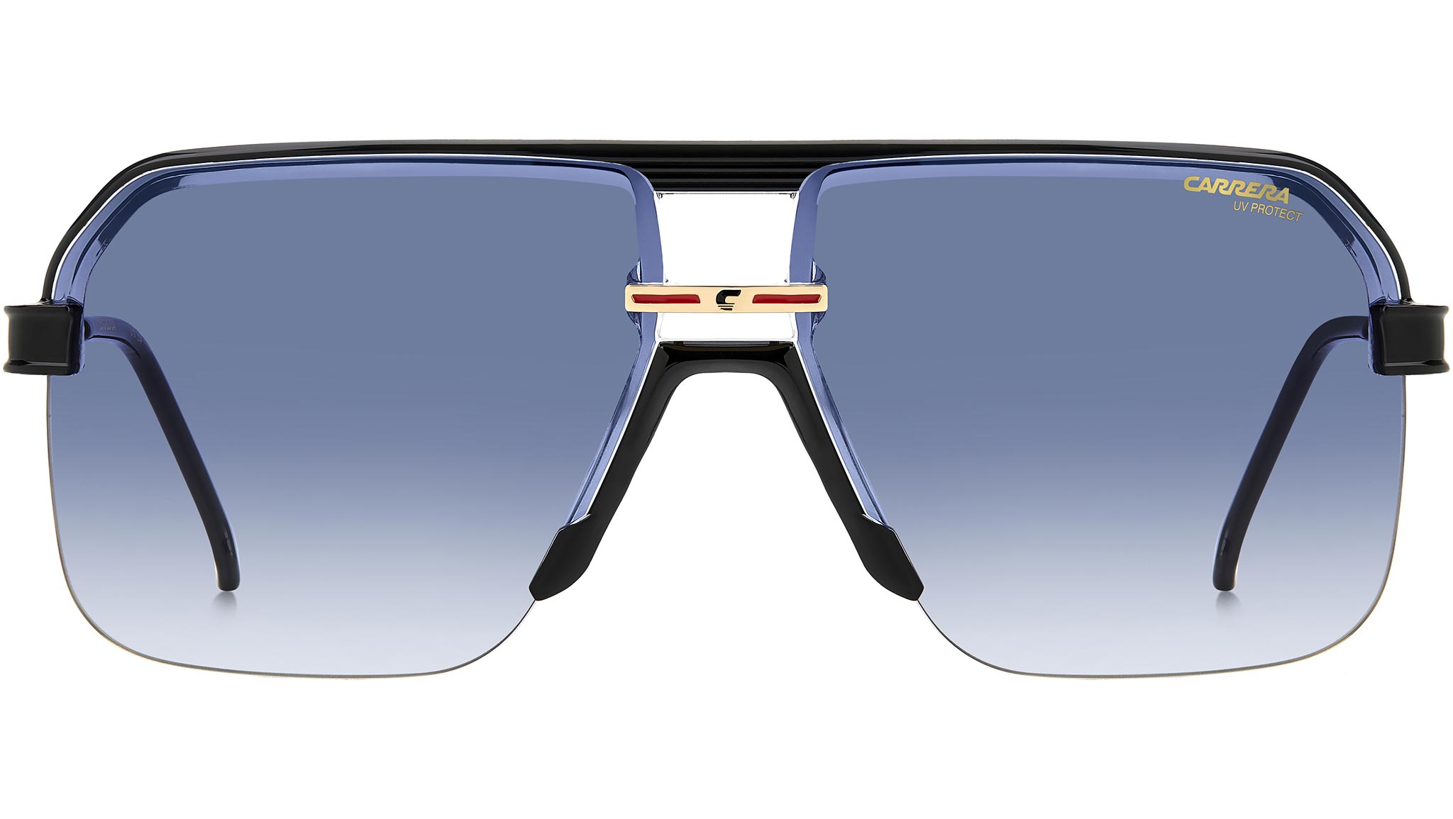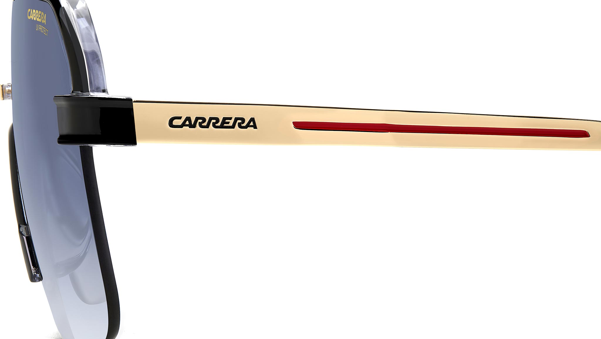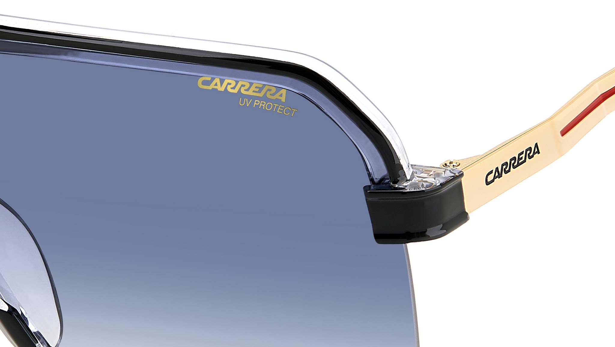 Occhiali da sole Carrera modello 1066/S colore 7C5 08 black crystal. Per questi occhiali da sole Carrera guarda al proprio patrimonio storico e offre nuove interpretazioni. La montatura è half-rim: le lenti sono agganciate alla struttura sul lato superiore, libere sul lato inferiore. La placca con la “C” Carrera è incastonata tra le lenti, innegabilmente protagonista. Innovativo il design delle aste, realizzate in metallo e leggermente piegate, a completare questo accessorio pregno di carattere, disponibile anche in versione specchiata o polarizzata.