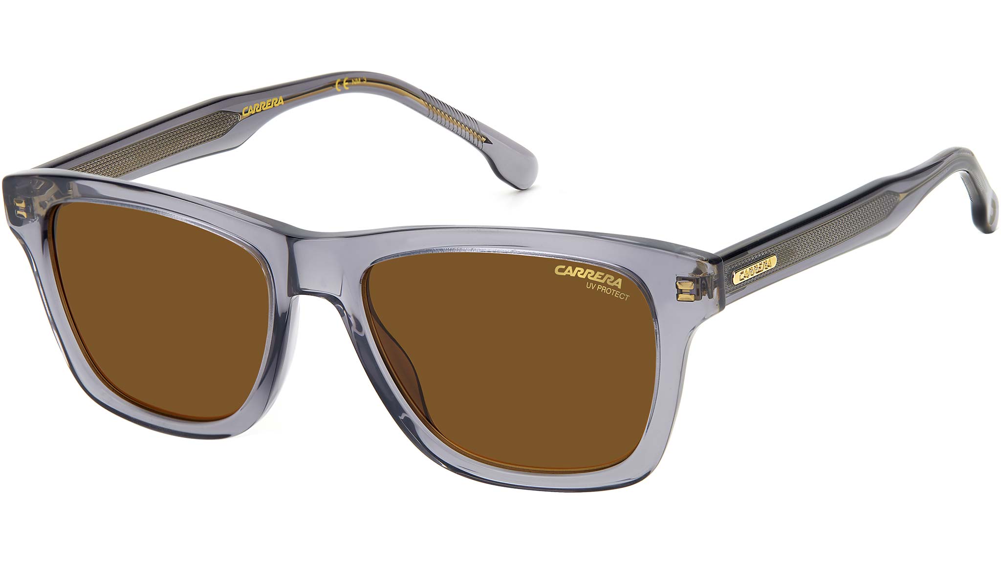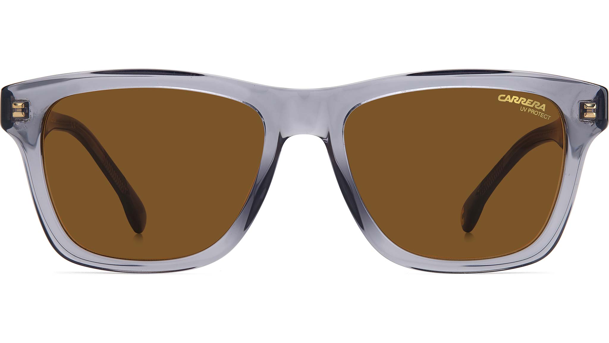 Ispirati alle autentiche montature vintage, questi occhiali da sole da uomo aggiornano la classica silhouette squadrata con un tocco sportivo. La robusta costruzione in acetato amplifica la forma e la texture della montatura rettangolare, mentre i dettagli logati Carrera e l’inconfondibile anima in metallo, visibile all’interno delle aste, completano il design con un’intrigante nota di carattere.