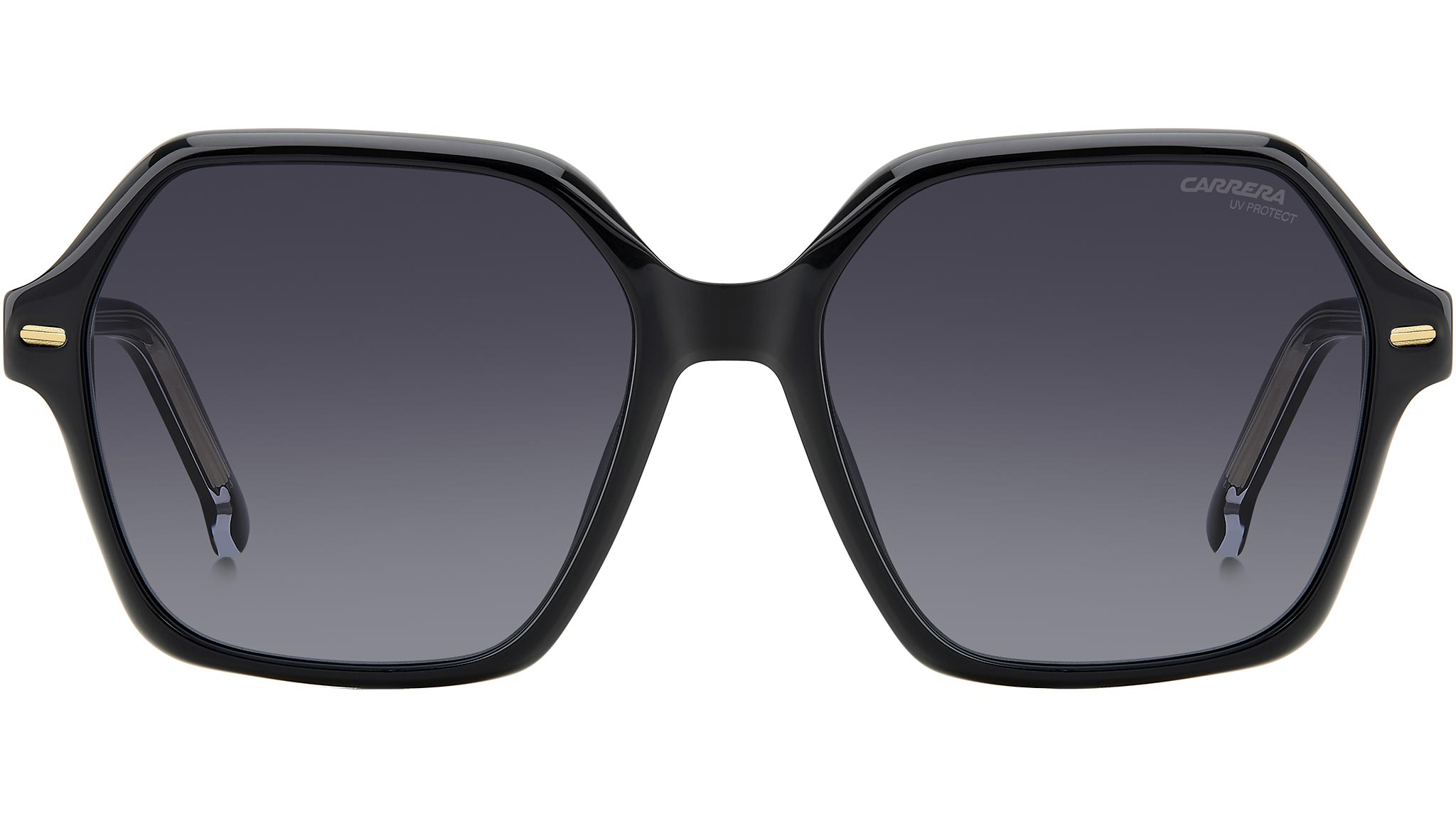 Occhiali da sole Carrera modello 3026/S colore 807 9O black. Carrera sceglie geometrie soft e ispirazioni retrò per questi occhiali da sole donna. Gli elementi tipici del brand diventano gioielli che impreziosiscono la montatura: i rivetti in metallo dorato sul frontale e la “C” in rilievo sulle aste. La struttura è in acetato, declinata in diverse opzioni colore che includono sfumature, trasparenze e havana colorata. Le lenti sono personalizzabili con la gradazione preferita, disponibili anche in versione specchiata.