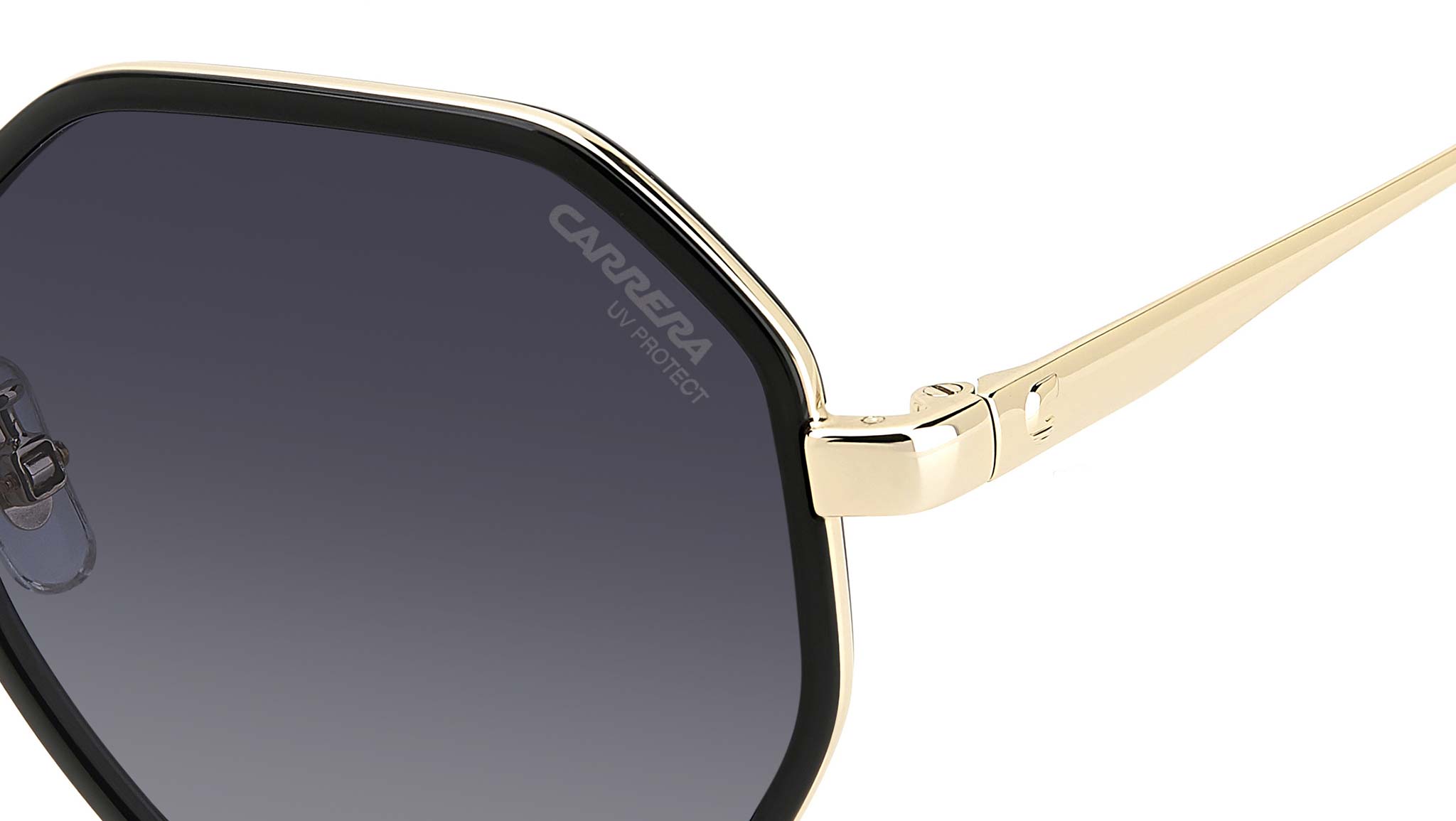 Occhiali da sole Carrera modello 3029/S colore 807 9O black. Eccentrico ma raffinato e senza tempo, come solo Carrera sa essere, questo paio di occhiali da sole per donna supera ogni tendenza. Il suo valore estetico e costruttivo si vede nel frontale: squisita la forma vagamente ottagonale, ricercata la costruzione in doppio materiale – metallo e acetato. La possibilità di montare lenti da sole graduate è un motivo in più per sfoggiare il modello in ogni occasione.