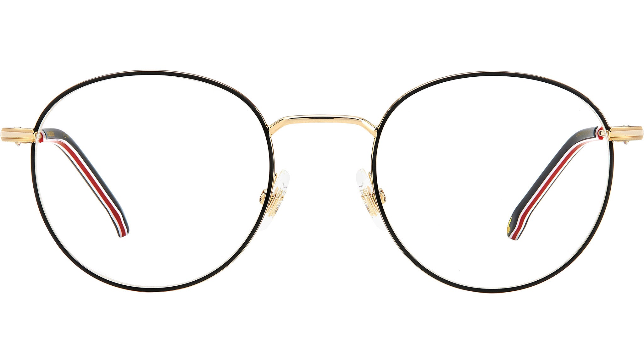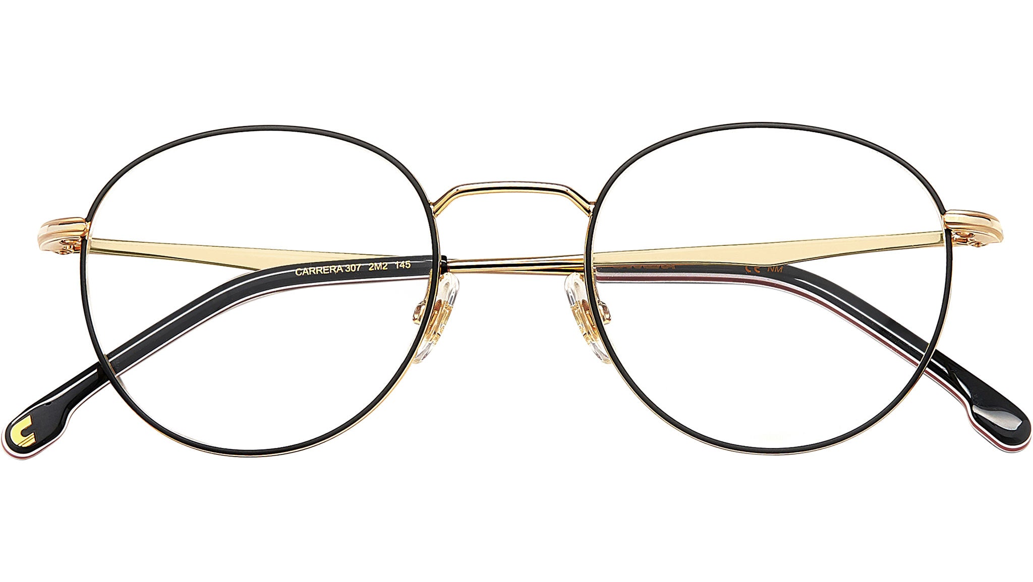 Occhiali da vista Carrera modello 307 colore 2M2 black gold. Occhiali da vista unisex dallo stile pulito e minimale, dato dal leggero profilo pantos in acciaio inossidabile sostenuto da naselli regolabili. Le aste sottili, con silhouette a pinna, rileggono in chiave moderna le forme archetipe dell’heritage Carrera. Sono inoltre completate da terminali in acetato, anche nelle varianti multistrato, nota che aggiunge stile e confort al modello. Le lenti sono disponibili in due diversi calibri, assicurando così una vestibilità davvero personalizzata.
