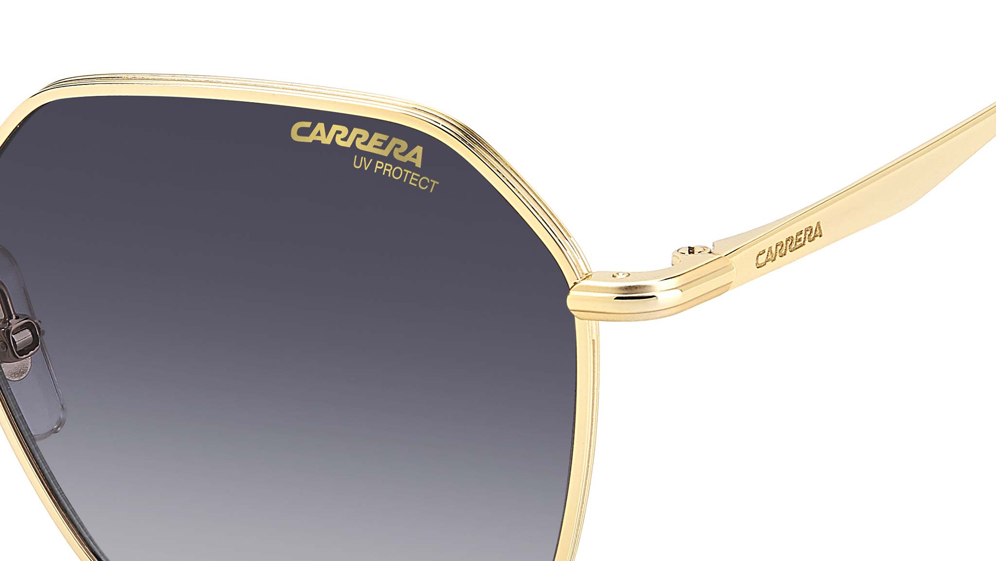 Occhiali da sole Carrera modello 334/S colore J5G 9O gold. Connubio tra le ultime tendenze e lo stile timeless Carrera, questi occhiali da sole presentano delicate geometrie e profili essenziali. Il frontale è in acciaio inossidabile, materiale noto per la sua leggerezza, plasmato in un delicato esagono. Il mood minimale è rimarcato dalle aste a pinna, firmate dal logo laserato e completate da terminali in acetato. Disponibile nella nuova variante oro opaco, oppure con lenti specchiate. Può montare lenti graduate.