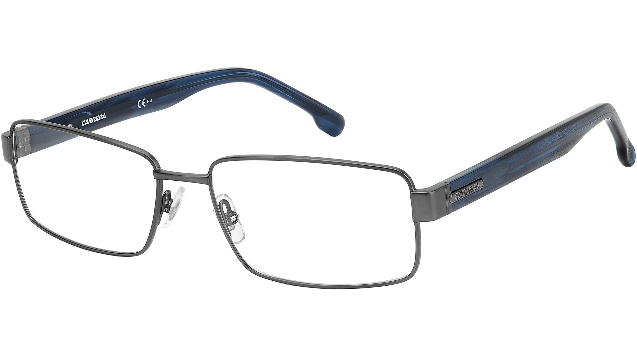 Occhiali da vista Carrera modello 8887 colore R80 matte dark ruthenium. Aggiungono una nota sporty agli outfit quotidiani questi occhiali da vista Carrera. La montatura rettangolare in acciaio inossidabile è infatti essenziale e versatile, ancora più comoda grazie ai naselli regolabili. Si agganciano al frontale le aste rivestite di acetato su cui spicca la targhetta con il logo in altorilievo, dotate di cerniere flessibili per una vestibilità ad hoc.