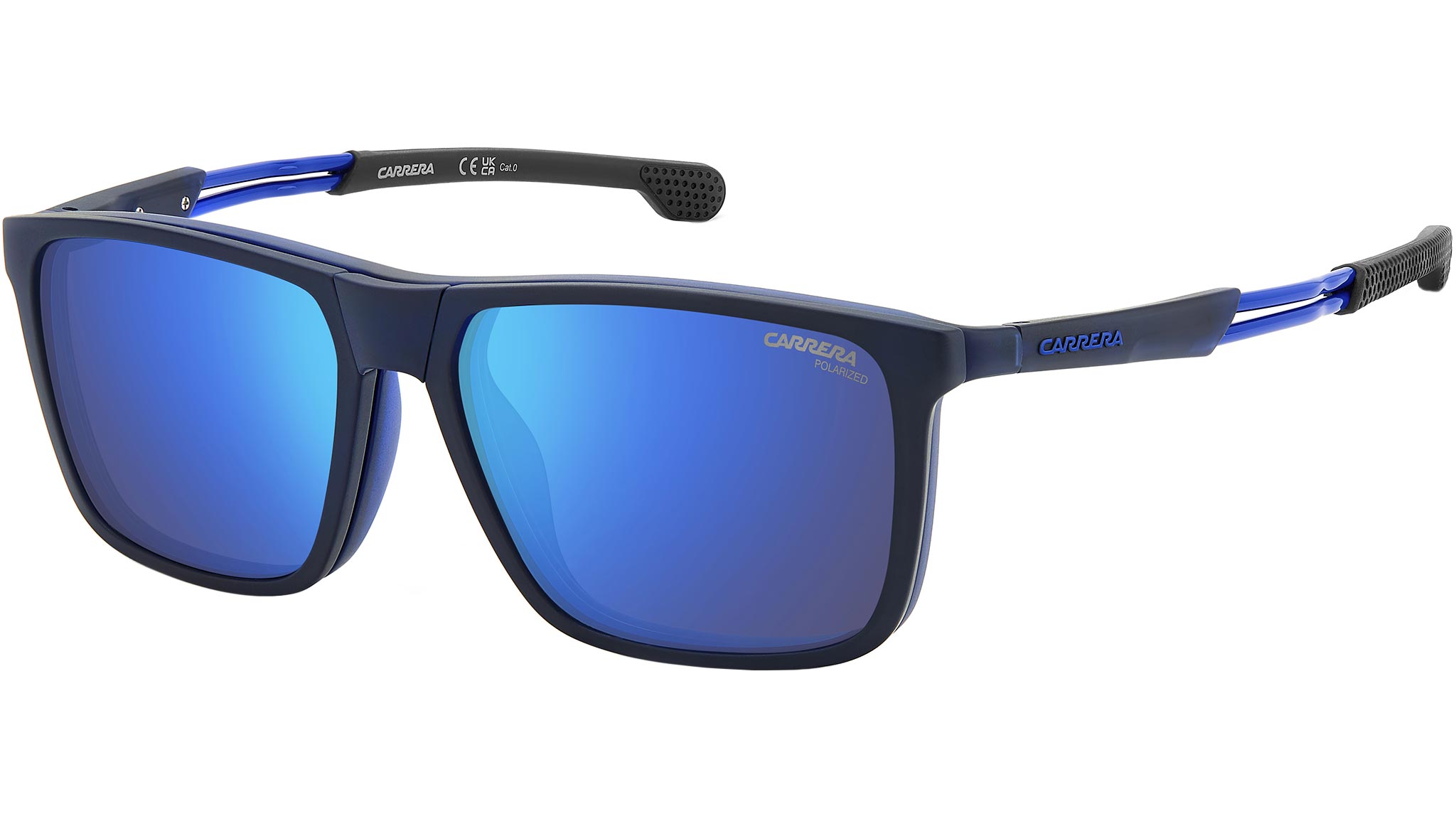 Occhiali da sole Carrera modello CA 4020/CS colore FLL 5X matte blue. Occhiali da vista Carrera con lenti da sole clip-on, autentici esponenti della tendenza athleisure. La montatura è in poliammide, materiale ad alte performance, sinonimo di leggerezza e resistenza nel tempo. Le aste presentano una distintiva apertura in ultem, materiale indeformabile e leggero evidenziato dal trattamento bi-color abbinato al logo. Gli occhiali si trasformano in un gesto: basterà applicare le lenti da sole polarizzate per una massima protezione nelle ore assolate.