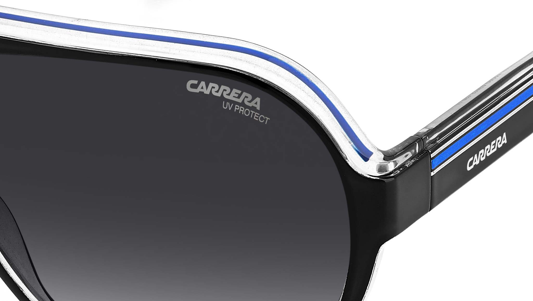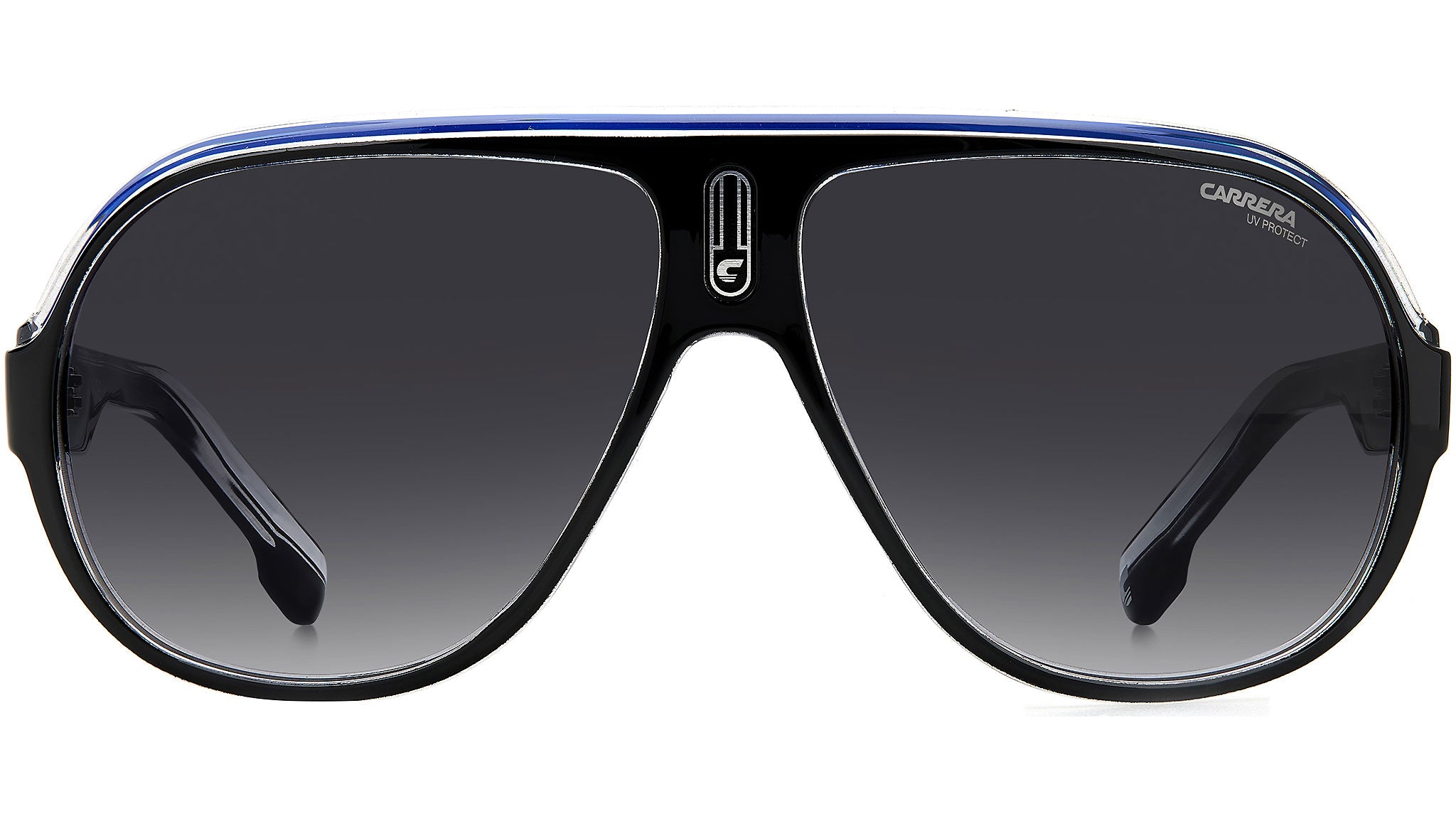 Modern craftsmanship and unexpected details define the Carrera Flag collection - as showcased by these sunglasses. The teardrop-shaped pilot frame references archival designs with a sporty flat brow bar, the signature C logo positioned proudly on the front, and the distinct stripe motif adorning the temples. The unique colorway delivers a touch of heritage-inspired style.