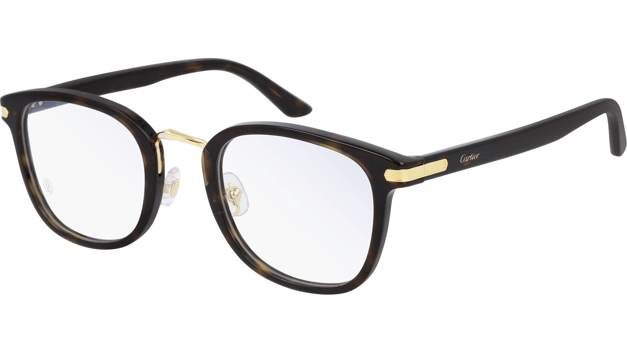 Occhiali da vista Cartier linea Contemporary modello CT0146O 002, variante colore tartaruga scuro / champagne dorato levigato con astine color tartaruga. Fondata nel 1847, Maison Cartier non è solo uno dei nomi più affermati nel mondo della gioielleria e dell'orologeria, ma anche il punto di riferimento del più moderno concetto di lusso contemporaneo. Cartier crea occhiali eccezionali, declina ogni design traendo ispirazione dai tratti distintivi del proprio vocabolario iconico, guidato da una vision stilistica chiara, dalla creatività più distintiva, e da un savoir-faire eccezionale.