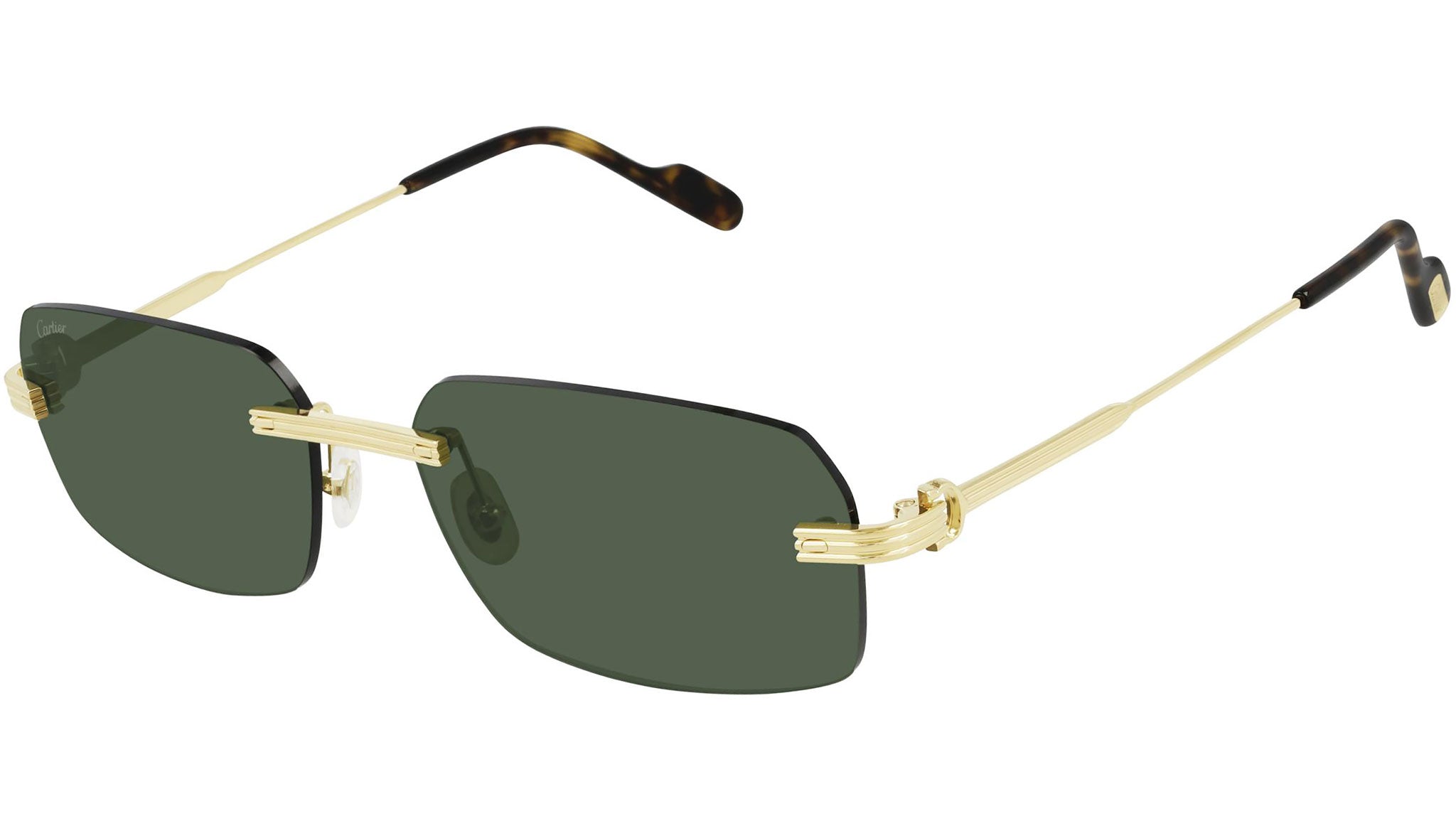 Occhiali da sole Cartier Première CT0271S 002 uomo con montatura rettangolare in metallo color oro finitura smooth e lenti verde. Linea: Première de Cartier. Codice modello: CT0271S. Codice colore: 002. Made in France. Rivenditore autorizzato Cartier online. Gli occhiali vengono consegnati con custodia e accessori originali e sono coperti dalla garanzia ufficiale di 12 mesi del produttore.