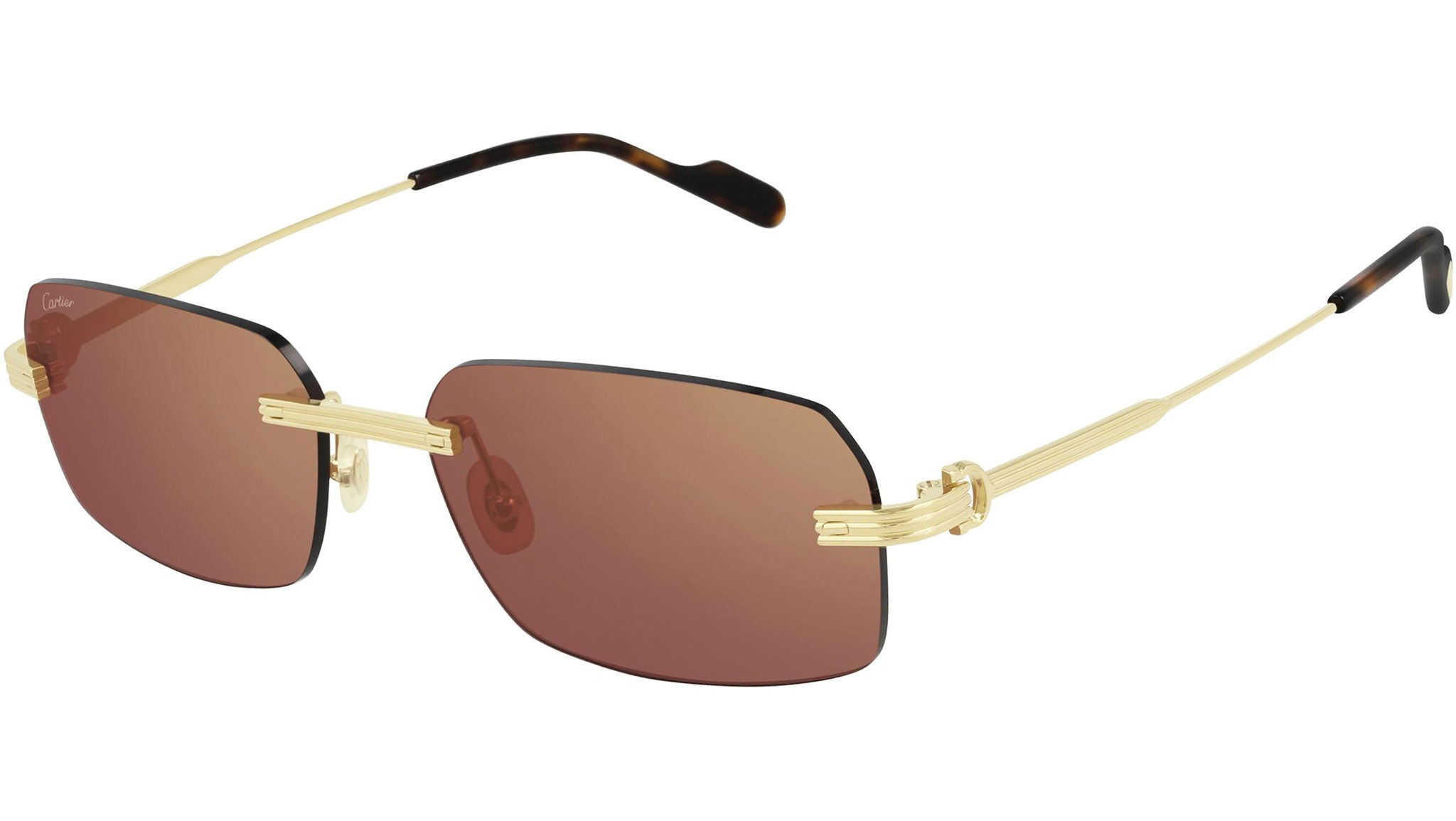 Occhiali da sole Cartier Première CT0271S 004 uomo con montatura rettangolare in metallo color oro finitura smooth e lenti bordeaux con flash oro. Linea: Première de Cartier. Codice modello: CT0271S. Codice colore: 004. Made in France. Rivenditore autorizzato Cartier online. Gli occhiali vengono consegnati con custodia e accessori originali e sono coperti dalla garanzia ufficiale di 12 mesi del produttore.