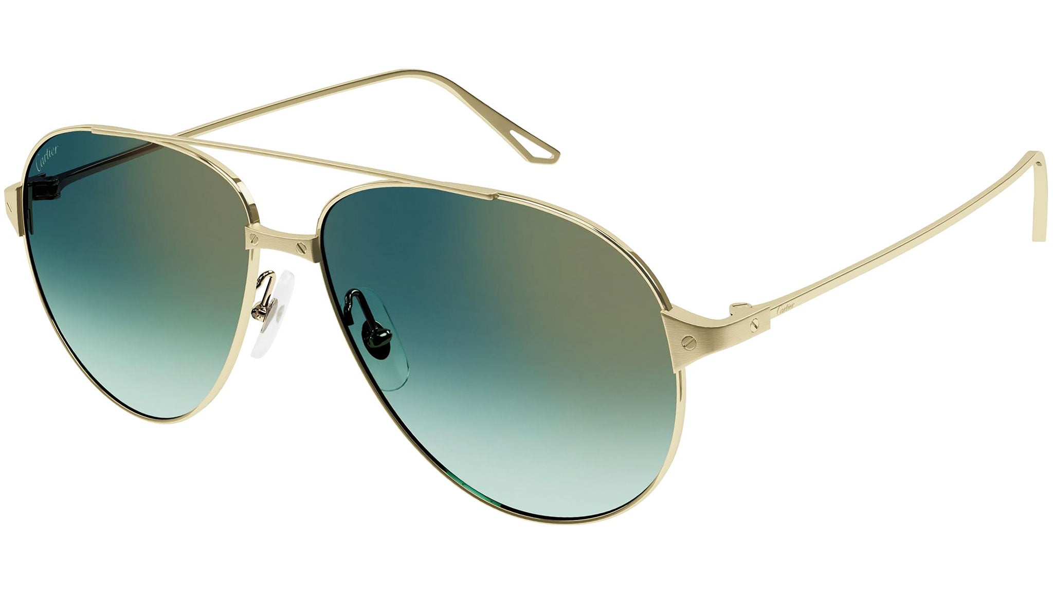 Occhiali da sole Cartier Core Range modello CT0298S 004, variante colore oro levigato satinato con lenti color blu scuro sfumato e aqua con flash oro. Fondata nel 1847, Maison Cartier non è solo uno dei nomi più affermati nel mondo della gioielleria e dell'orologeria, ma anche il punto di riferimento del più moderno concetto di lusso contemporaneo. Cartier crea occhiali eccezionali, declina ogni design traendo ispirazione dai tratti distintivi del proprio vocabolario iconico, guidato da una vision stilistica chiara, dalla creatività più distintiva, e da un savoir-faire eccezionale.