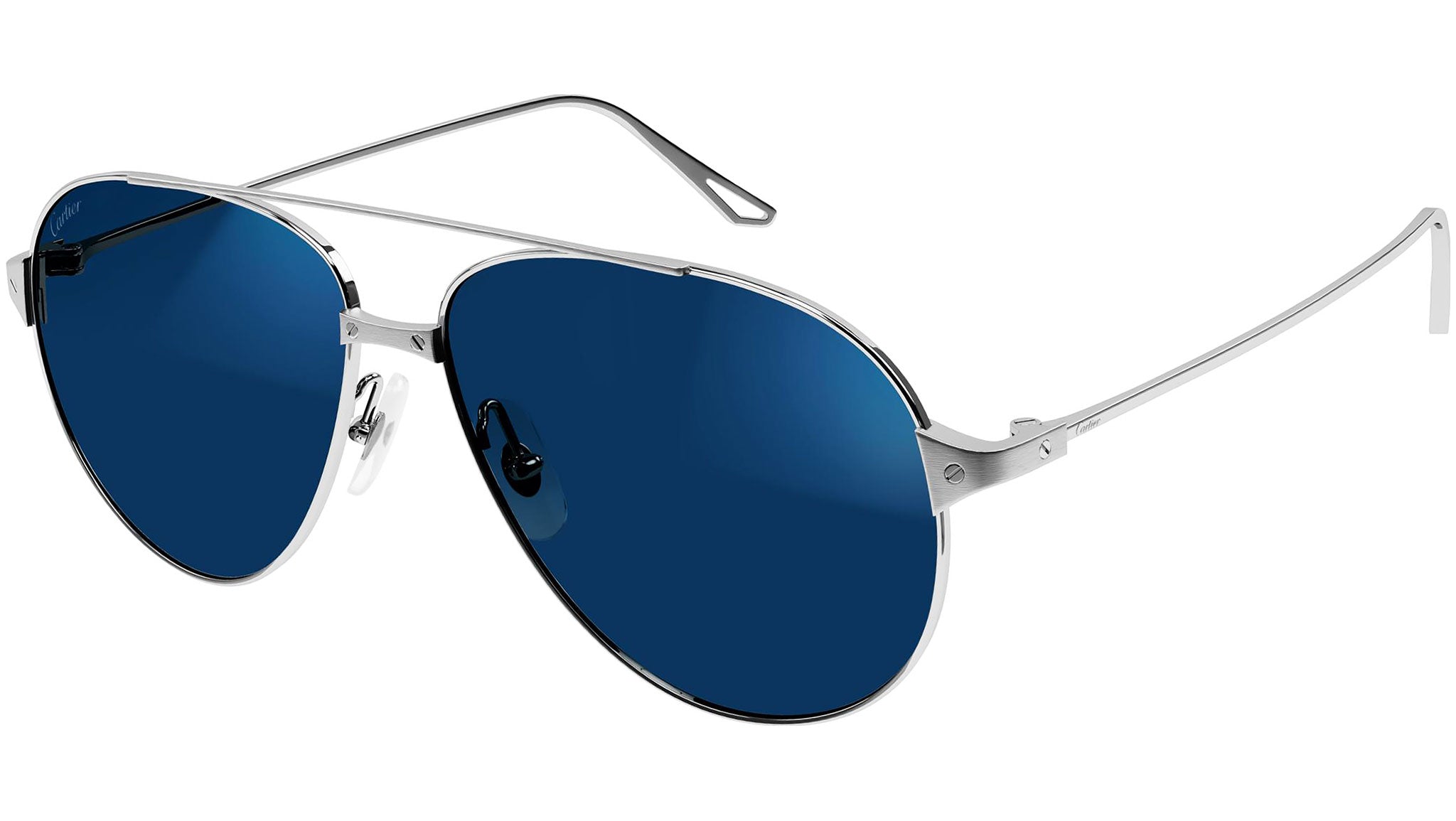 Occhiali da sole Cartier Core Range modello CT0298S 011, variante colore finish platino levigato con lenti color grigio blu chiaro a blu scuro + AR blu. Fondata nel 1847, Maison Cartier non è solo uno dei nomi più affermati nel mondo della gioielleria e dell'orologeria, ma anche il punto di riferimento del più moderno concetto di lusso contemporaneo. Cartier crea occhiali eccezionali, declina ogni design traendo ispirazione dai tratti distintivi del proprio vocabolario iconico, guidato da una vision stilistica chiara, dalla creatività più distintiva, e da un savoir-faire eccezionale.