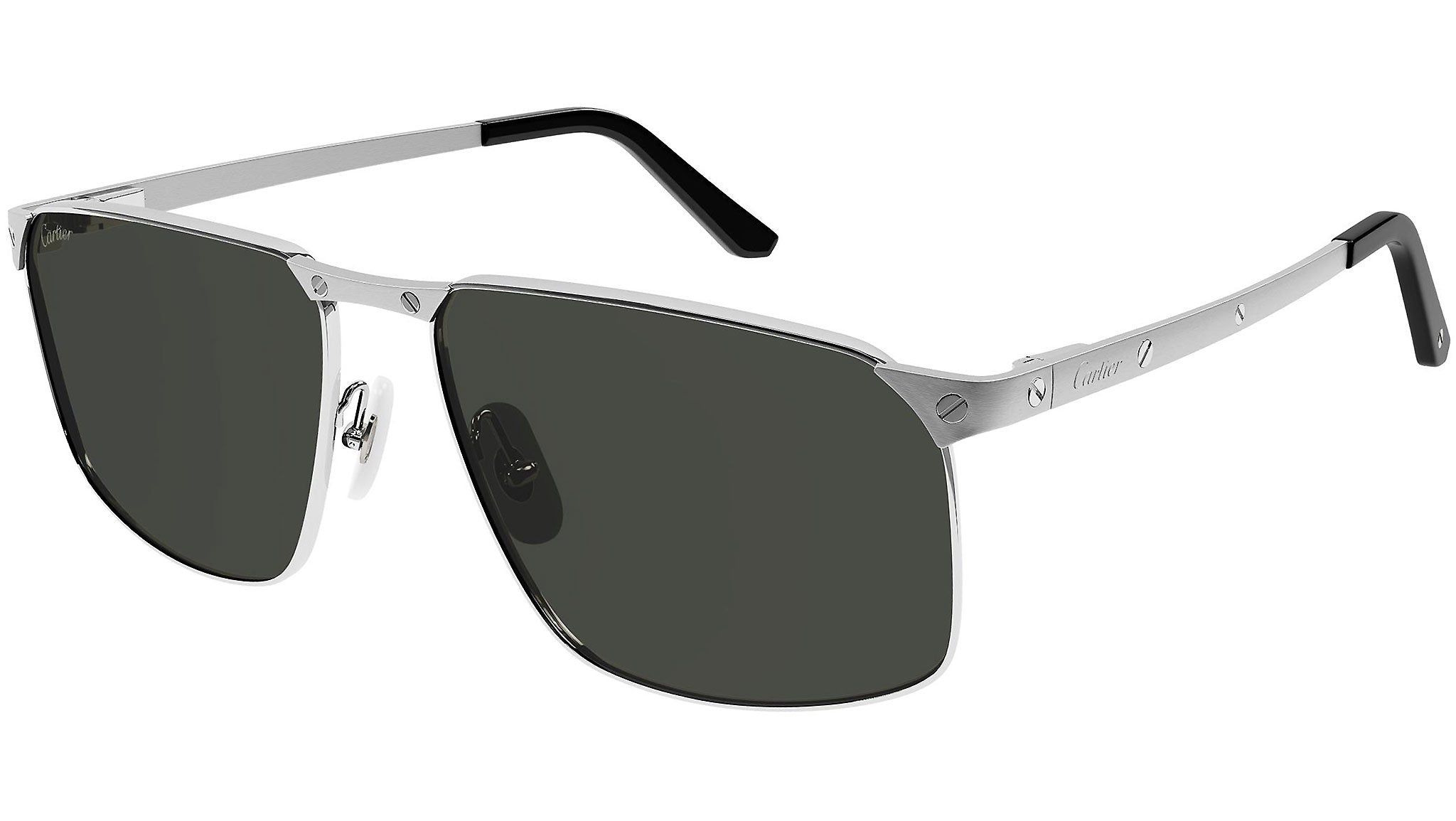 Occhiali da sole Cartier Core Range modello 0322S, variante colore 001 platino levigato satinato con lenti color grigio. Fondata nel 1847, Maison Cartier non è solo uno dei nomi più affermati nel mondo della gioielleria e dell'orologeria, ma anche il punto di riferimento del più moderno concetto di lusso contemporaneo. Cartier crea occhiali eccezionali, declina ogni design traendo ispirazione dai tratti distintivi del proprio vocabolario iconico, guidato da una vision stilistica chiara, dalla creatività più distintiva, e da un savoir-faire eccezionale.