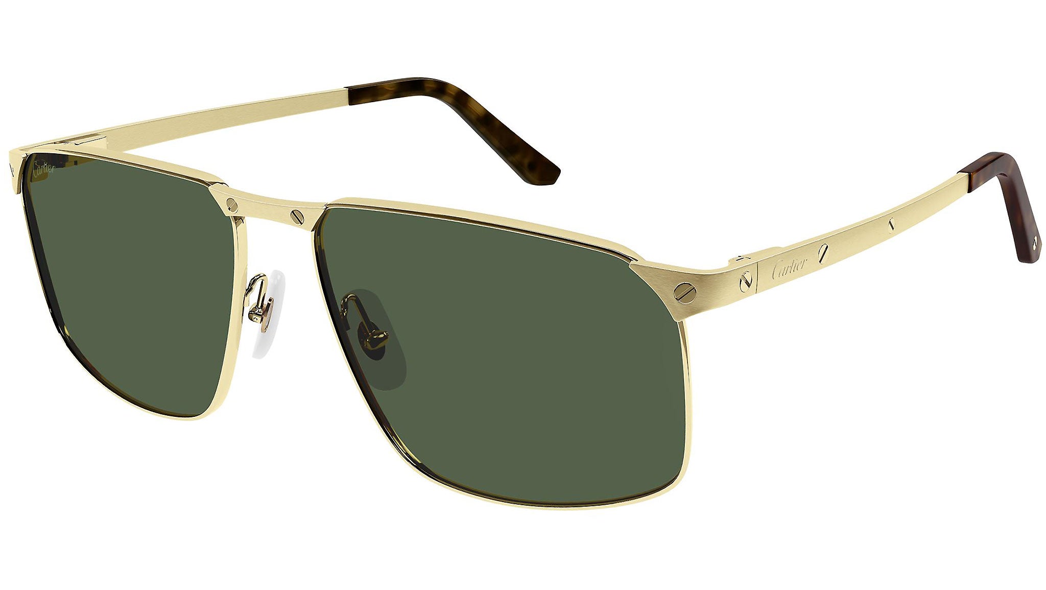 Occhiali da sole Cartier Core Range modello 0322S, variante colore 002 oro levigato satinato con lenti color verde. Fondata nel 1847, Maison Cartier non è solo uno dei nomi più affermati nel mondo della gioielleria e dell'orologeria, ma anche il punto di riferimento del più moderno concetto di lusso contemporaneo. Cartier crea occhiali eccezionali, declina ogni design traendo ispirazione dai tratti distintivi del proprio vocabolario iconico, guidato da una vision stilistica chiara, dalla creatività più distintiva, e da un savoir-faire eccezionale.