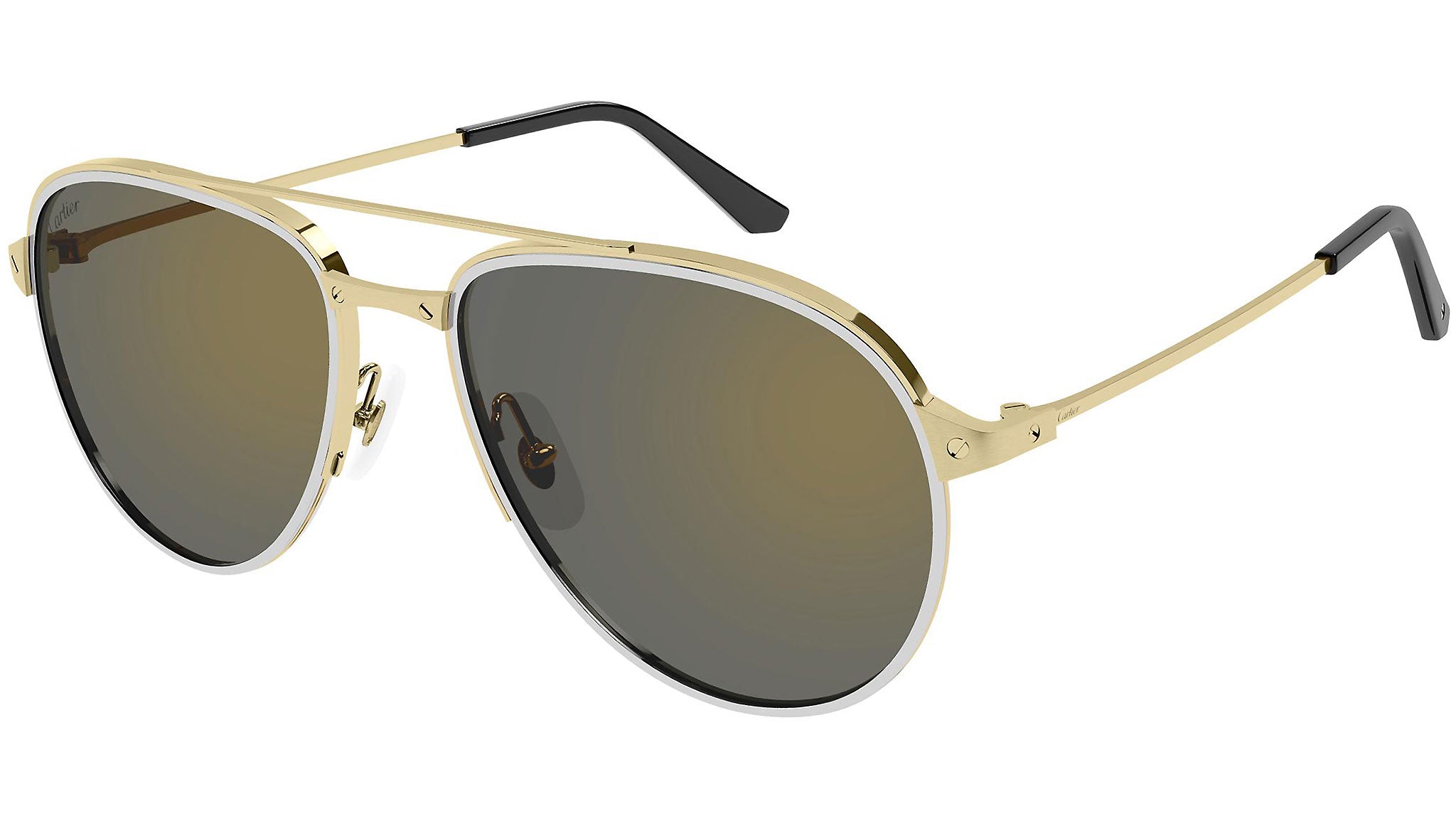 Occhiali da sole Cartier Core Range modello 0325S, variante colore 007 oro levigato satinato con inserto platino con lenti color grigio con flash oro. Fondata nel 1847, Maison Cartier non è solo uno dei nomi più affermati nel mondo della gioielleria e dell'orologeria, ma anche il punto di riferimento del più moderno concetto di lusso contemporaneo. Cartier crea occhiali eccezionali, declina ogni design traendo ispirazione dai tratti distintivi del proprio vocabolario iconico, guidato da una vision stilistica chiara, dalla creatività più distintiva, e da un savoir-faire eccezionale.