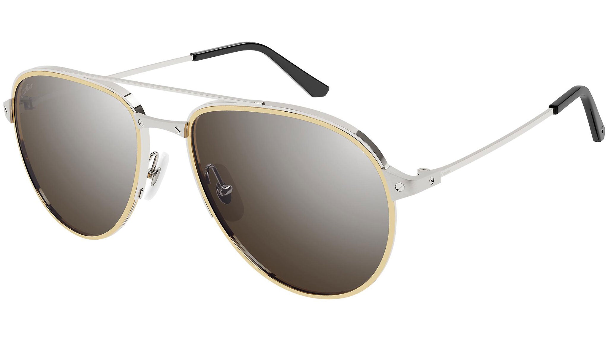 Occhiali da sole Cartier Core Range modello 0325S, variante colore 008 platino levigato satinato con inserto oro con lenti color marrone con flash argento. Fondata nel 1847, Maison Cartier non è solo uno dei nomi più affermati nel mondo della gioielleria e dell'orologeria, ma anche il punto di riferimento del più moderno concetto di lusso contemporaneo. Cartier crea occhiali eccezionali, declina ogni design traendo ispirazione dai tratti distintivi del proprio vocabolario iconico, guidato da una vision stilistica chiara, dalla creatività più distintiva, e da un savoir-faire eccezionale.
