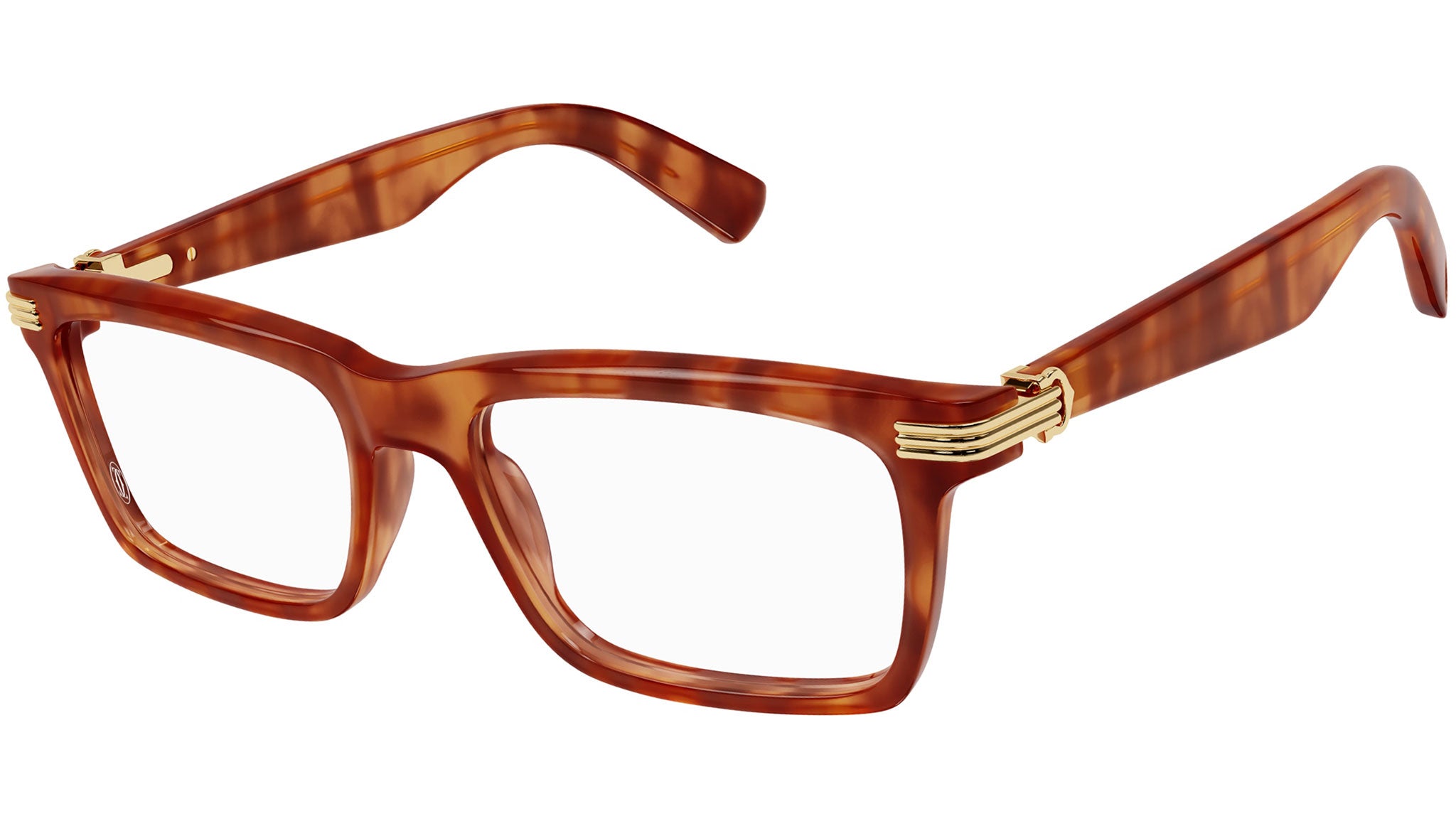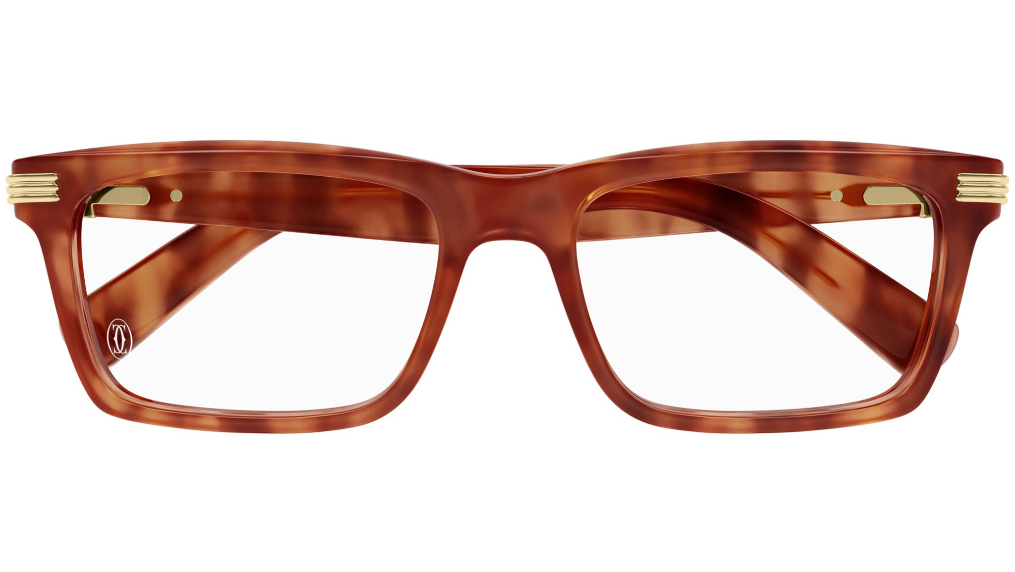 Occhiali da vista Cartier linea Contemporary modello CT0420O variante colore 004 effetto tartaruga chiaro con astine color tartaruga.