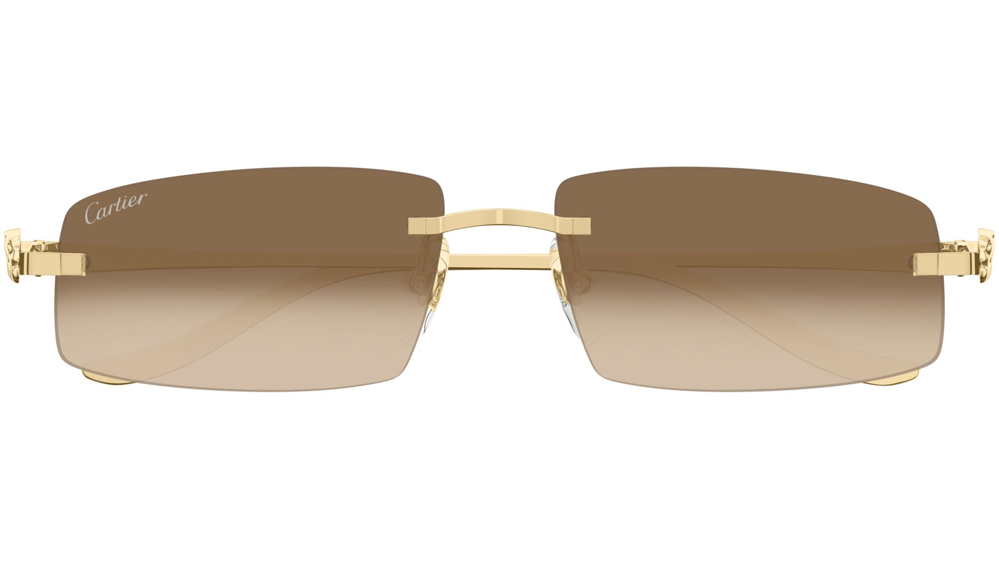 Occhiali da sole Cartier linea Core Range modello CT0505S in metallo rettangolare codice colore 003 oro finitura smooth con aste color oro e lenti color marrone sfumato.