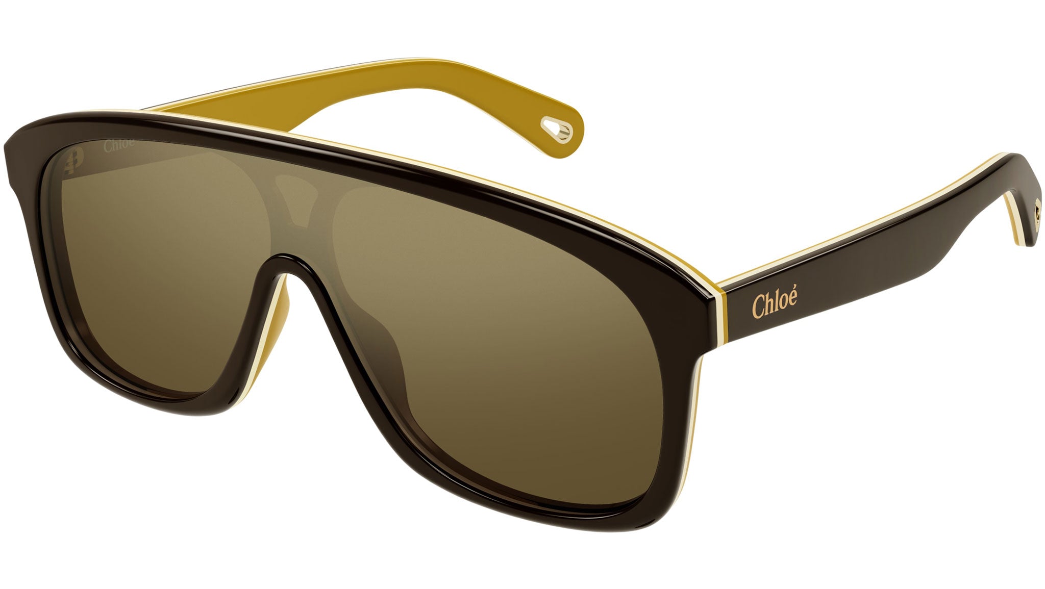 Occhiali da sole Chloé CH0212S 001 donna con montatura aviatore in acetato riciclato marrone lucido solido triplo layer / avorio / senape e lenti marrone + canna di fucile flash tinta unita. Linea: Chloé. Codice modello: CH0212S. Codice colore: 001. Made in Italy. Rivenditore autorizzato Chloé online. Gli occhiali vengono consegnati con custodia e accessori originali e sono coperti dalla garanzia ufficiale di 12 mesi del produttore.