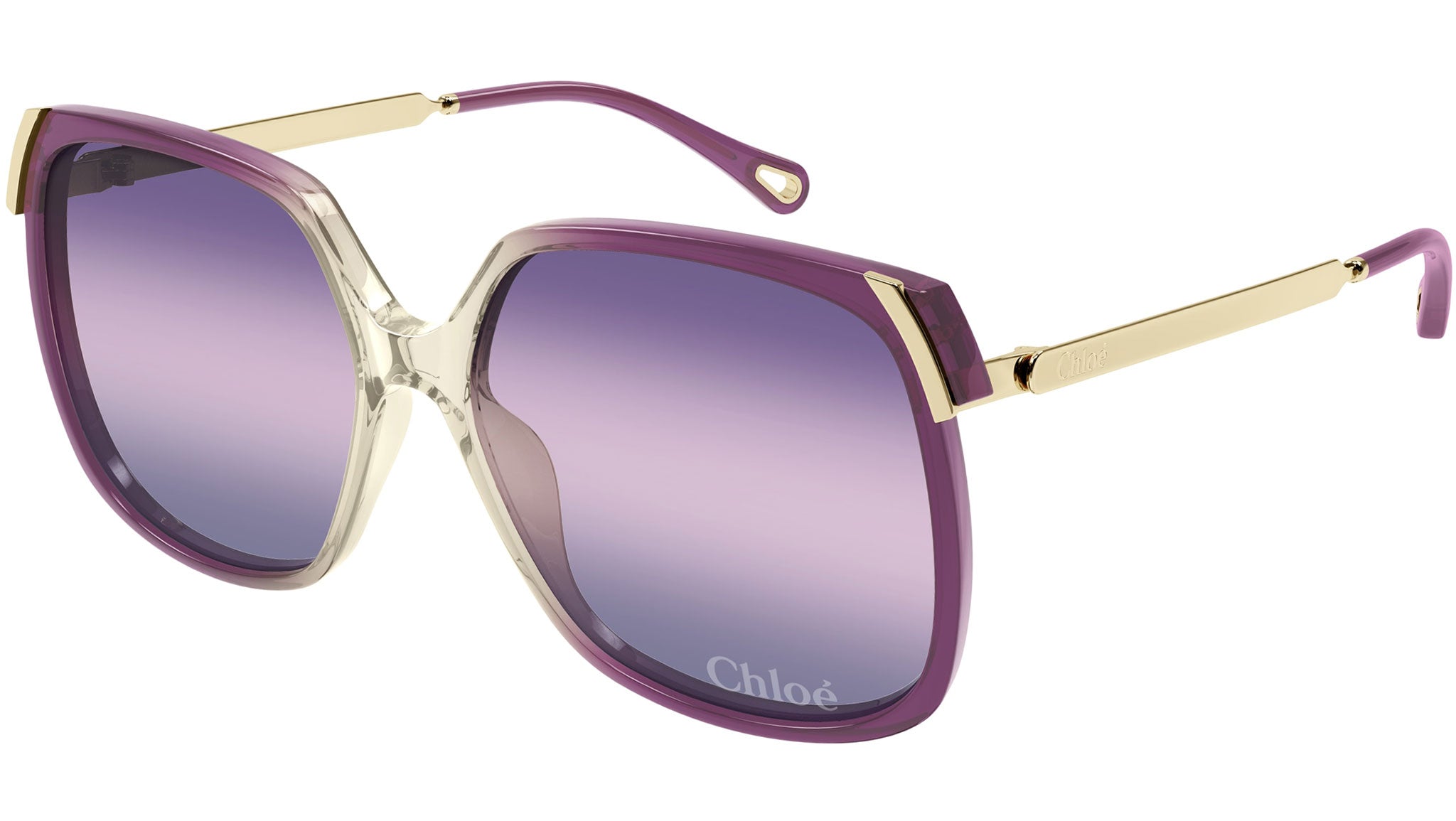 Occhiali da sole Chloé CH0286S 006 donna con montatura rettangolare in acetato riciclato ciclamino trasparente sfumato beige e lenti tripla sfumatura viola / rosa chiaro / blu. Linea: Chloé. Codice modello: CH0286S. Codice colore: 006. Made in Italy. Rivenditore autorizzato Chloé online. Gli occhiali vengono consegnati con custodia e accessori originali e sono coperti dalla garanzia ufficiale di 12 mesi del produttore.