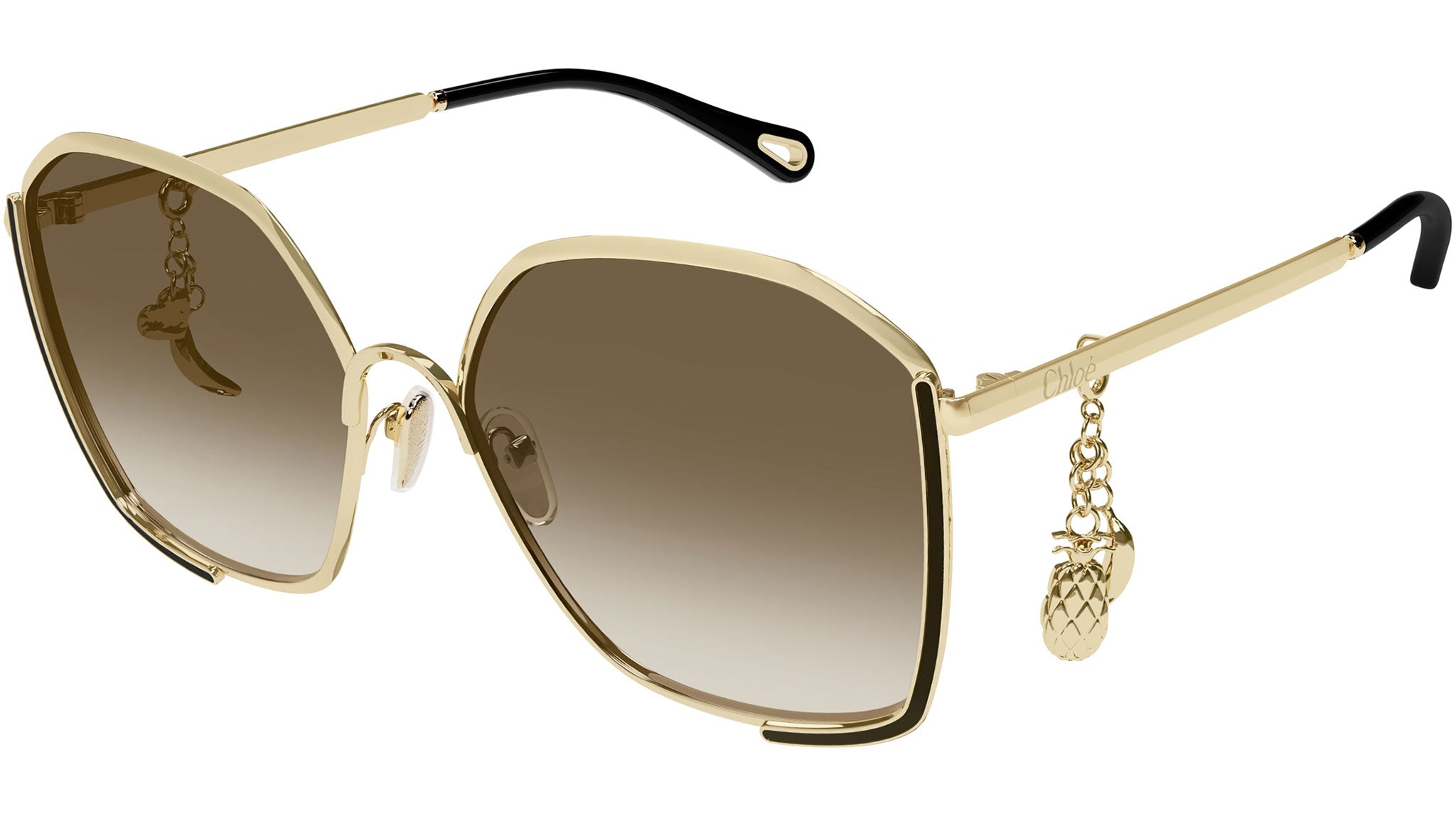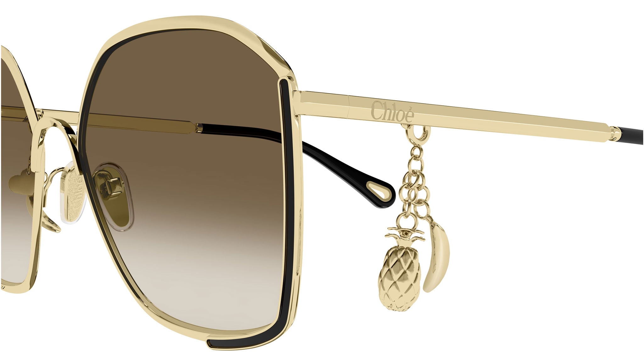 Occhiali da sole Chloé CH0288S 001 donna con montatura rettangolare in metallo oro classico lucido / smalto nero e lenti marrone sfumato. Linea: Chloé. Codice modello: CH0288S. Codice colore: 001. Made in Italy. Rivenditore autorizzato Chloé online. Gli occhiali vengono consegnati con custodia e accessori originali e sono coperti dalla garanzia ufficiale di 12 mesi del produttore.
