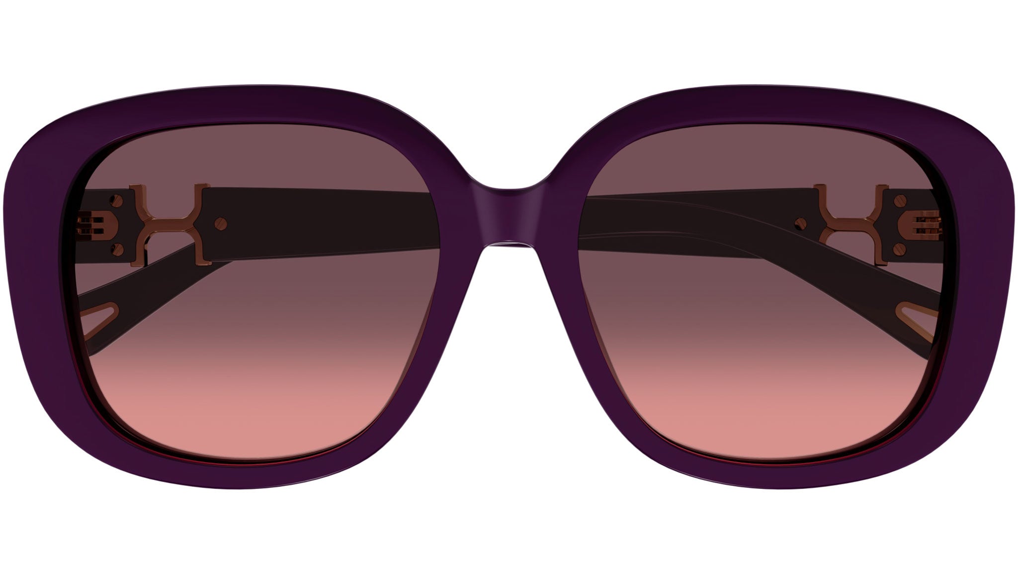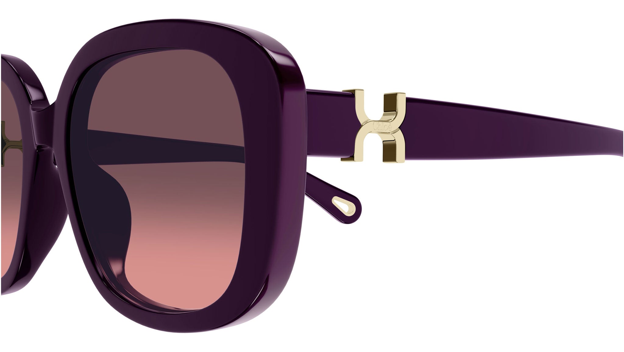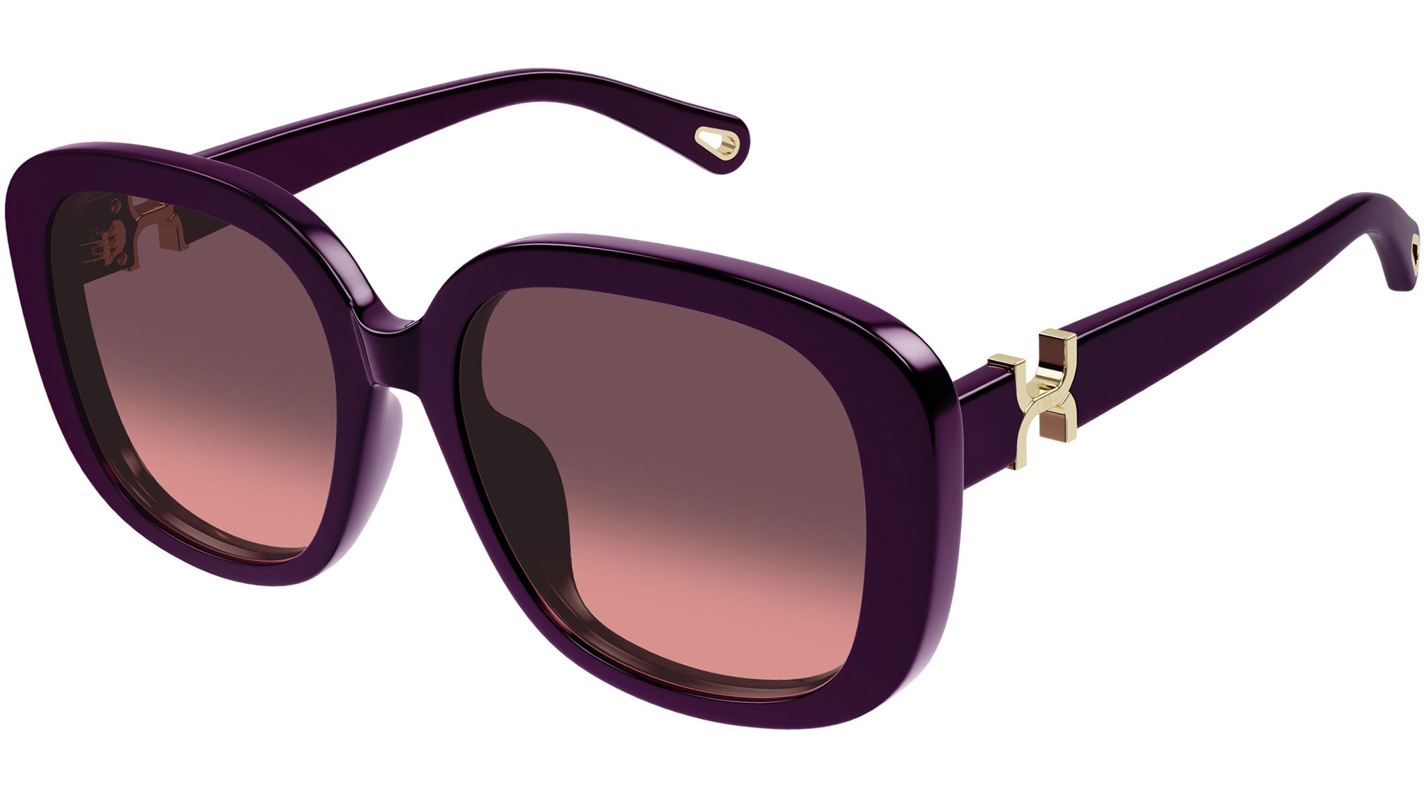 Occhiali da sole Chloé CH0303SK 005 donna con montatura rettangolare in acetato riciclato viola lucido tinta unita e lenti doppia sfumatura bordeaux / rosso. Linea: Chloé. Codice modello: CH0303SK. Codice colore: 005. Made in Japan. Rivenditore autorizzato Chloé online. Gli occhiali vengono consegnati con custodia e accessori originali e sono coperti dalla garanzia ufficiale di 12 mesi del produttore.