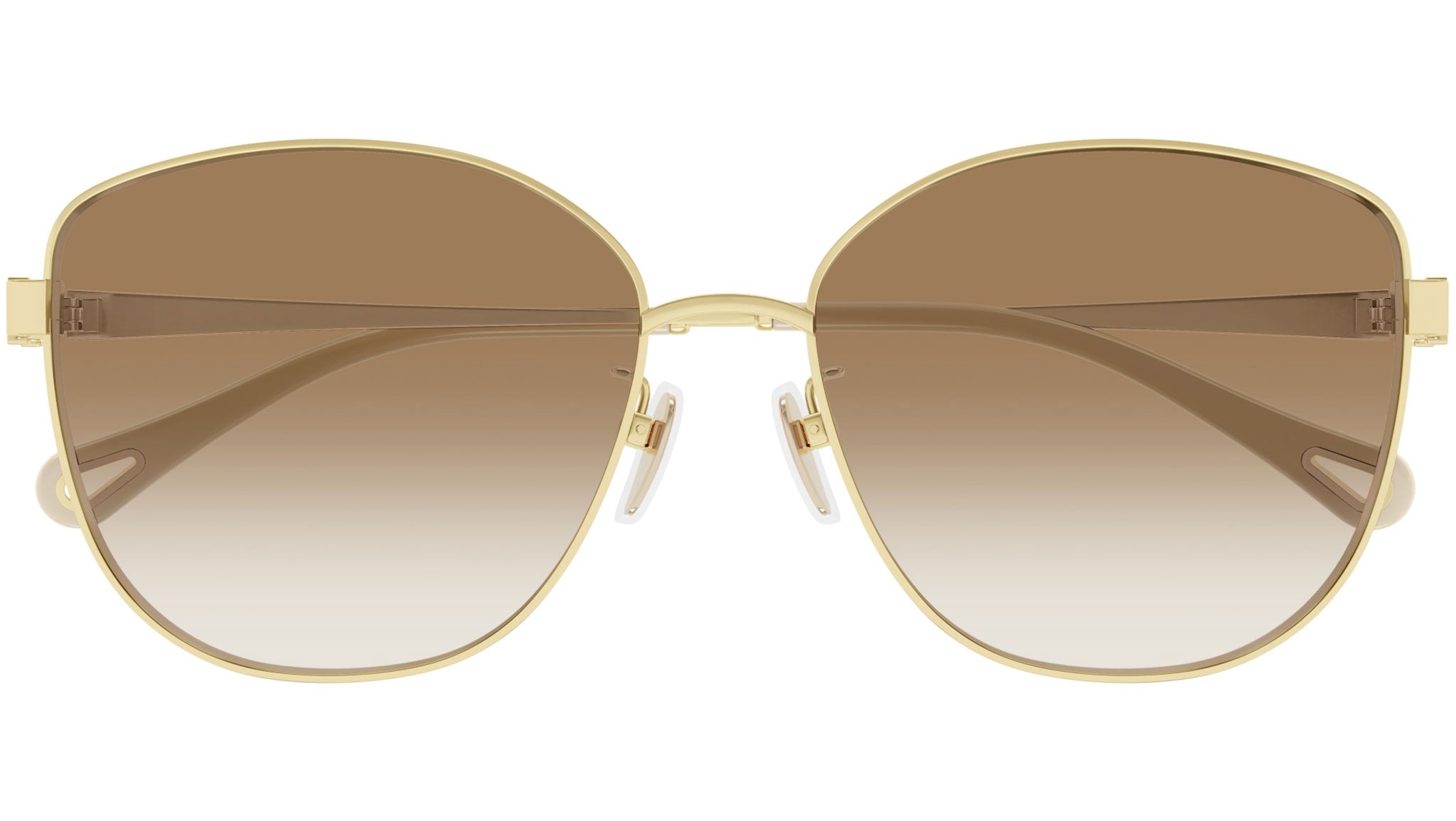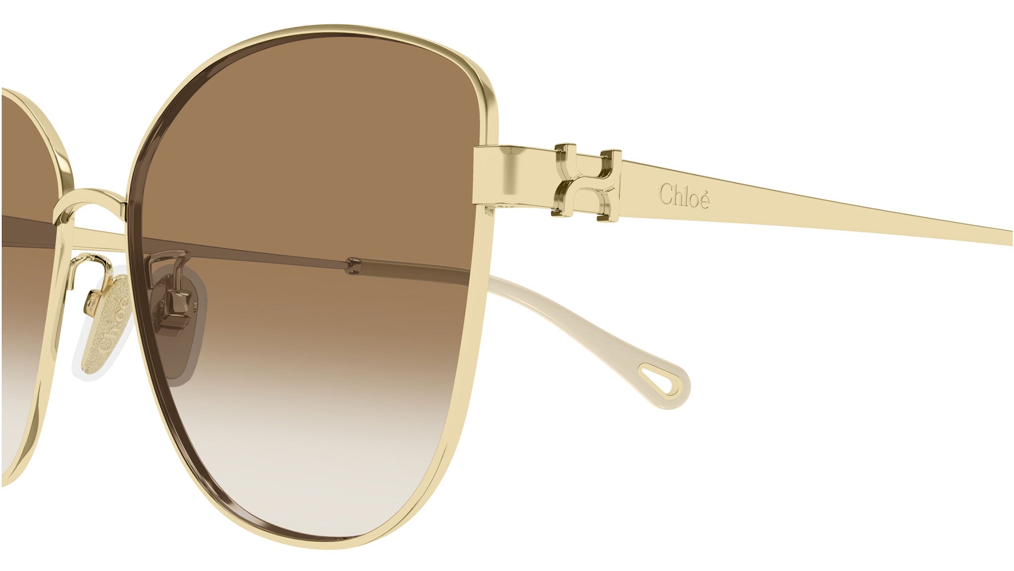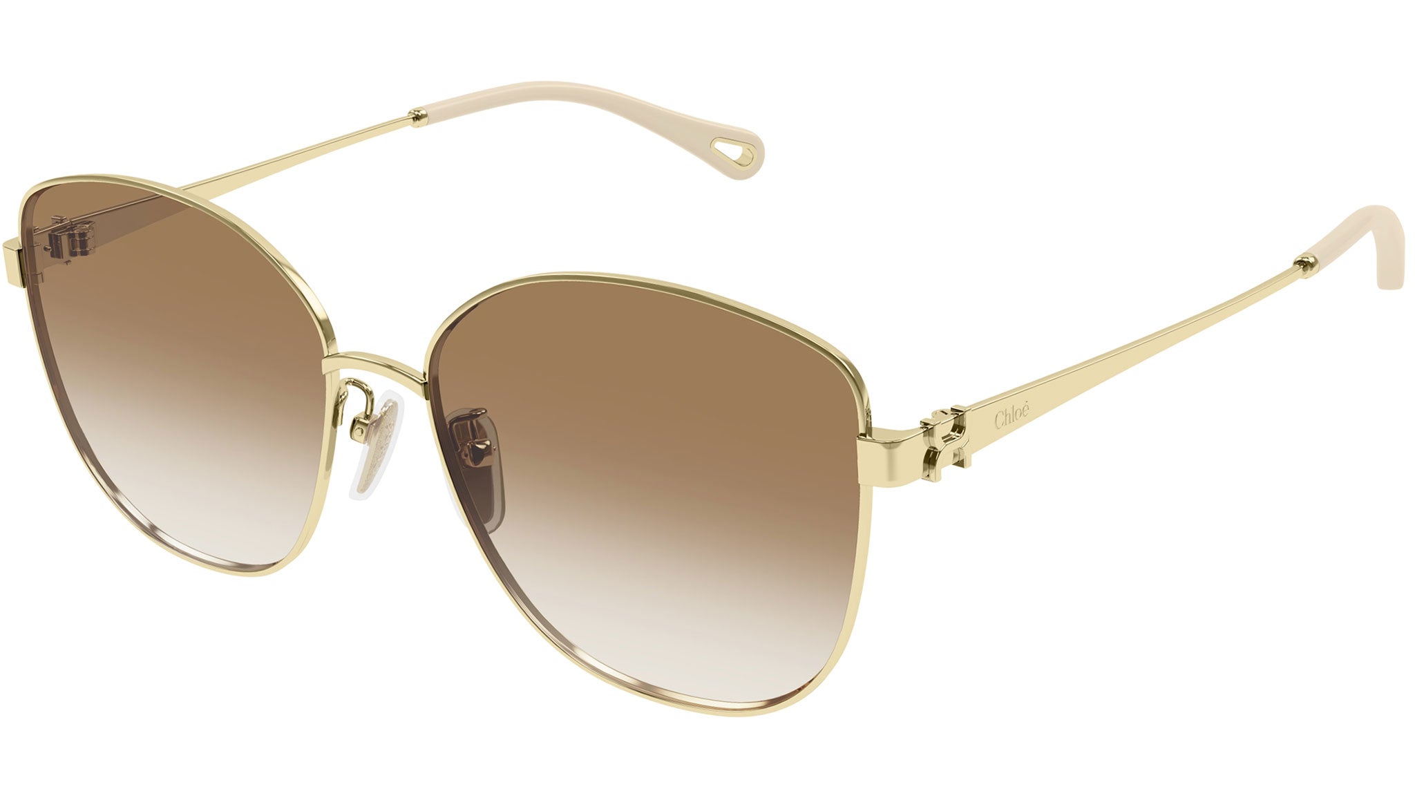 Occhiali da sole Chloé CH0306SK 004 donna con montatura rettangolare in metallo oro lucido classico e lenti marrone sfumato. Linea: Chloé. Codice modello: CH0306SK. Codice colore: 004. Made in Japan. Rivenditore autorizzato Chloé online. Gli occhiali vengono consegnati con custodia e accessori originali e sono coperti dalla garanzia ufficiale di 12 mesi del produttore.