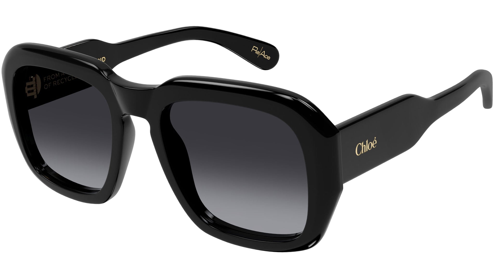 Occhiali da sole Chloé CH0310S 001 donna con montatura rettangolare in acetato riciclato nero lucido tinta unita e lenti grigio sfumato. Linea: Chloé. Codice modello: CH0310S. Codice colore: 001. Made in Italy. Rivenditore autorizzato Chloé online. Gli occhiali vengono consegnati con custodia e accessori originali e sono coperti dalla garanzia ufficiale di 12 mesi del produttore.