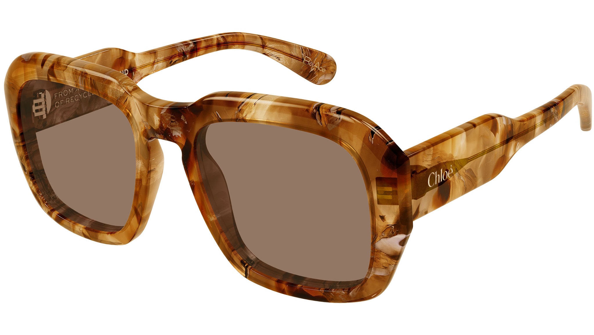 Occhiali da sole Chloé CH0310S 005 donna con montatura rettangolare in acetato riciclato marrone legno e lenti marrone tinta unita. Linea: Chloé. Codice modello: CH0310S. Codice colore: 005. Made in Italy. Rivenditore autorizzato Chloé online. Gli occhiali vengono consegnati con custodia e accessori originali e sono coperti dalla garanzia ufficiale di 12 mesi del produttore.