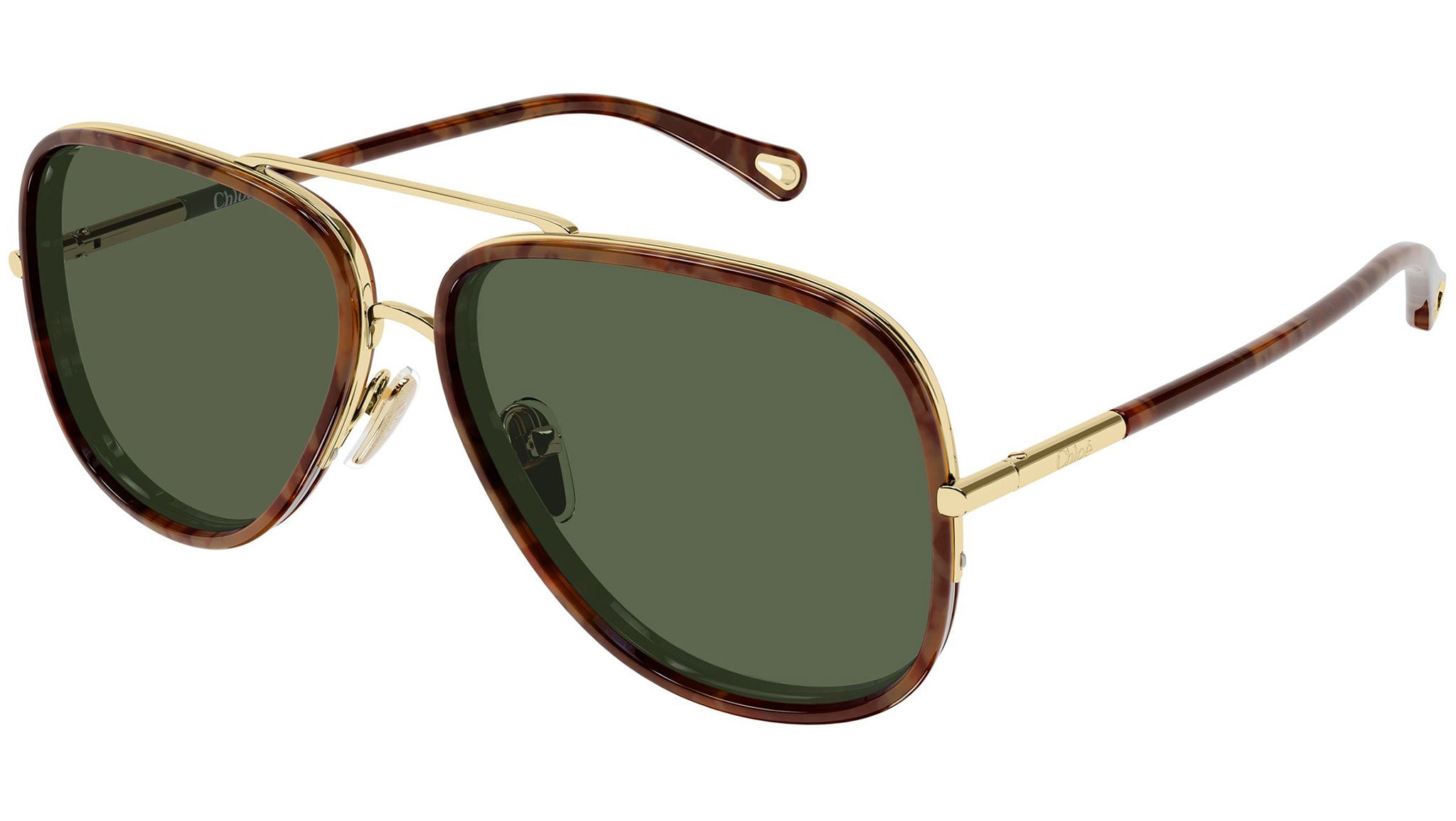 Occhiali da sole Chloé CH0382S 003 donna con montatura aviatore in metallo oro endura lucido e lenti verde scuro tinta unita. Linea: Chloé. Codice modello: CH0382S. Codice colore: 003. Made in Italy. Rivenditore autorizzato Chloé Eyewear online. Gli occhiali vengono consegnati con custodia e accessori originali e sono coperti dalla garanzia ufficiale di 12 mesi del produttore.