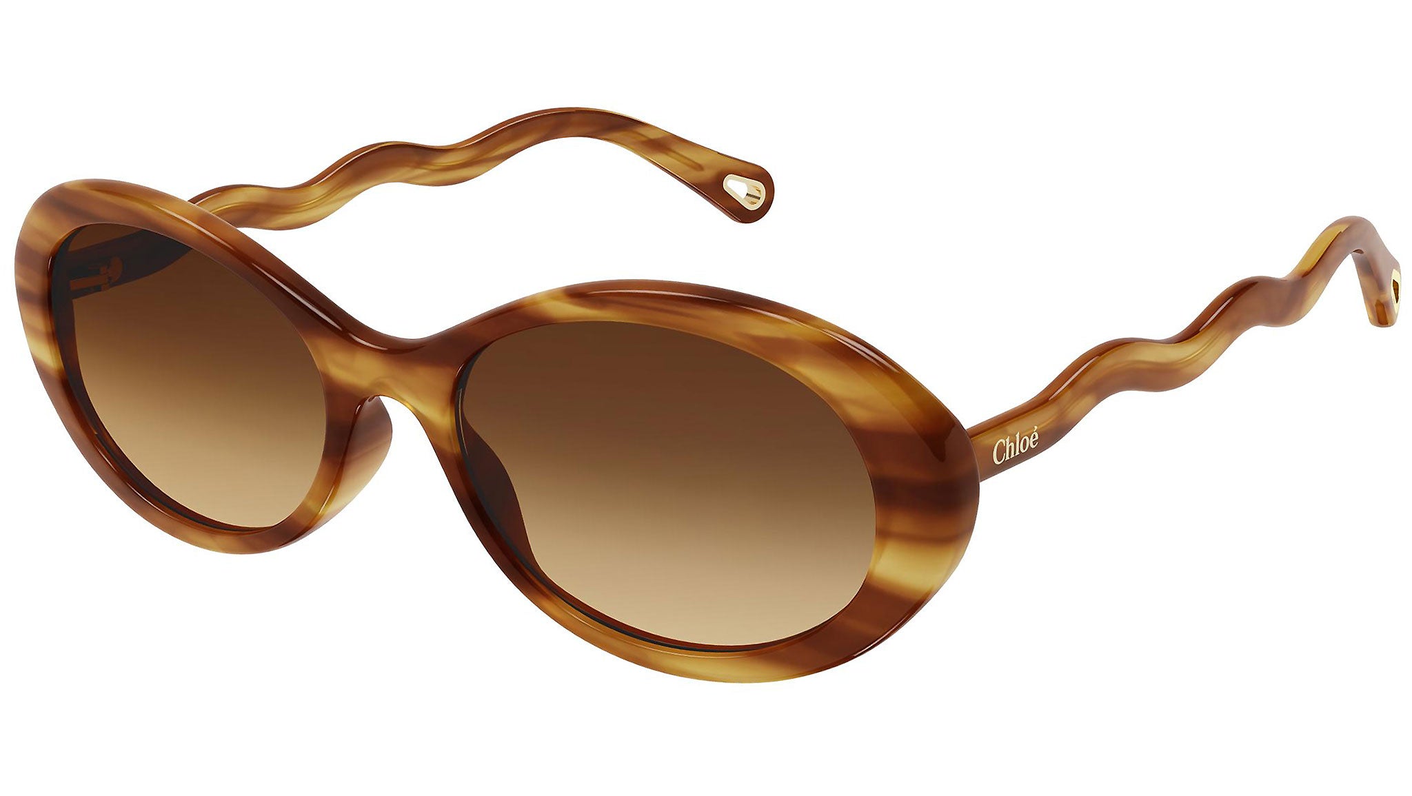 Occhiali da sole Chloé modello CH0088S 002, variante colore avana biondo lucido con lenti color doppia sfumatura marrone e arancione.