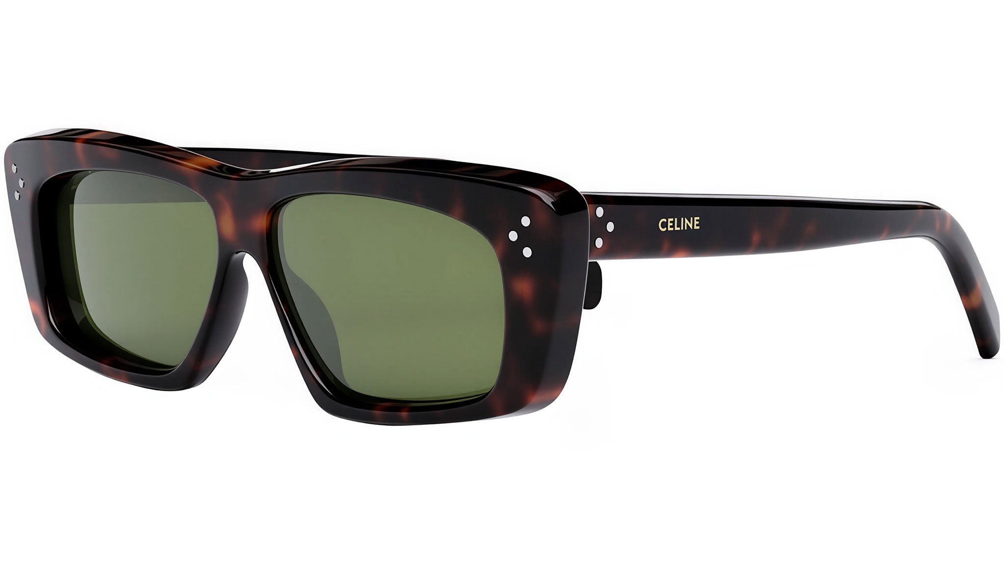 Occhiali da sole CELINE CL40259I 52N uomo con montatura geometrica in acetato avana lucido e lenti color verde. Linea: 3 Dots. Codice modello: CL40259I. Codice colore: 52N. Made in Italy. Rivenditore autorizzato CELINE online. Gli occhiali vengono consegnati con custodia e accessori originali e sono coperti dalla garanzia ufficiale di 12 mesi del produttore.