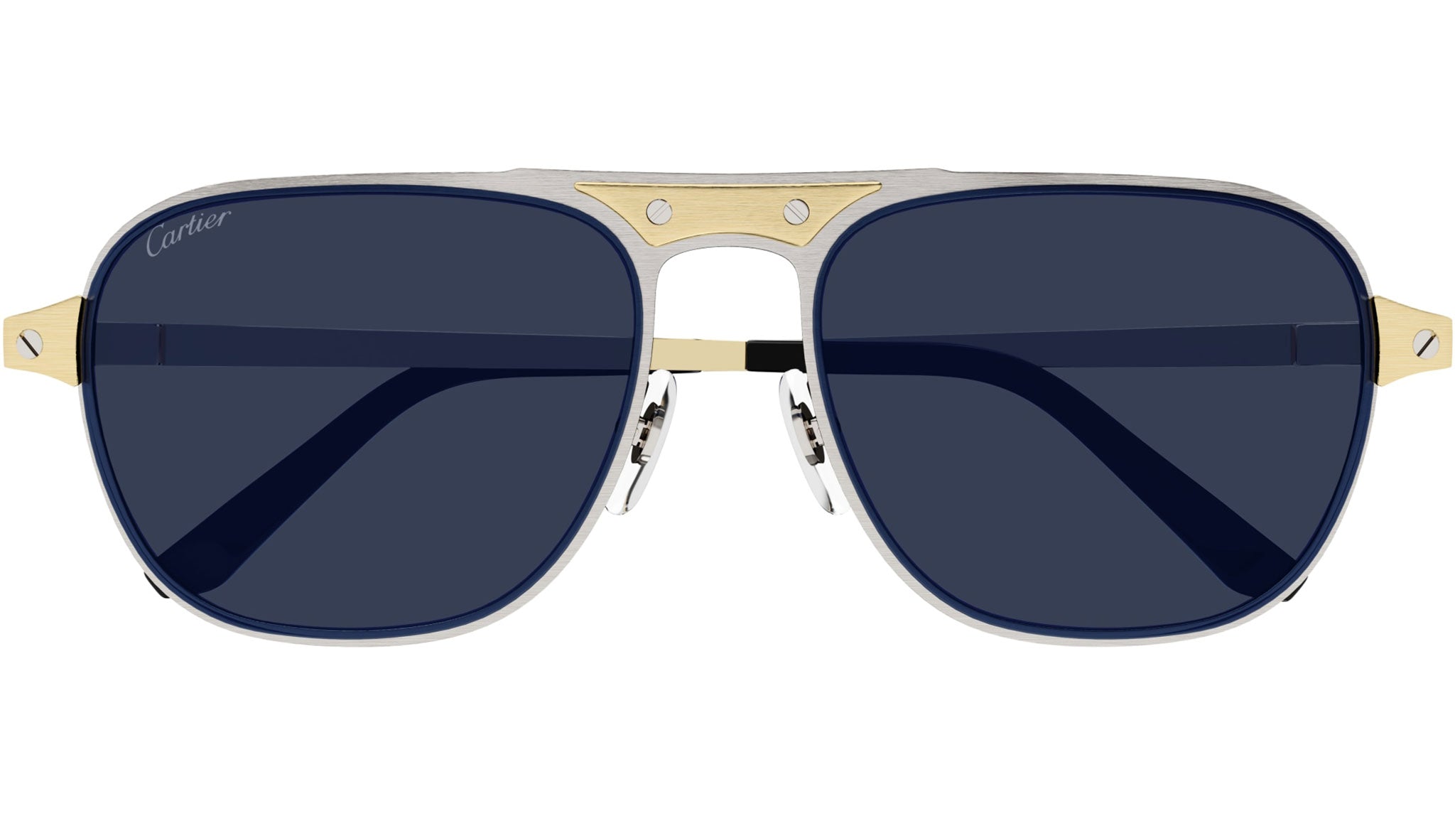 Occhiali da sole Cartier CT0532S 003 uomo con montatura aviatore in metallo argento e lenti blu. Linea: Exception. Codice modello: CT0532S. Codice colore: 003. Made in France. Rivenditore autorizzato Cartier online. Gli occhiali vengono consegnati con custodia e accessori originali e sono coperti dalla garanzia ufficiale di 12 mesi del produttore.
